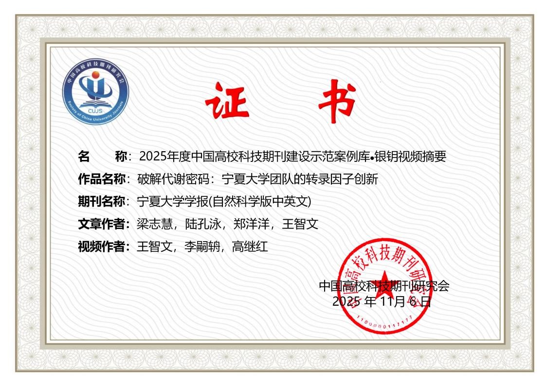 此次评选中,《农业科学研究(中英文)》编辑部成功入选“2025年度中国高校科技期刊建设示范案例库·优秀团队”,《beat365唯一官方网站学报(自然科学版中英文)》推送的视频作品《破解代谢密码:beat365唯一官方网站团队的转录因子创新》荣获“中国高校科技期刊建设示范案例库·银钥视频摘要”。