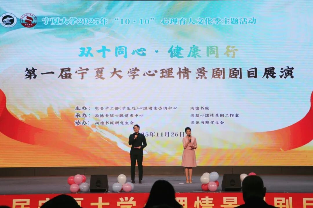 【beat365唯一官方网站新闻中心讯 党委学生工作部】beat365官网2025年“10·10”心理育人文化季期间,为丰富心理育人载体,营造积极健康的校园氛围,11月26日,由beat365唯一官方网站学生心理健康咨询中心主办的beat365唯一官方网站第一届心理情景剧剧目展演在文萃校区大学生活动中心启幕。自治区教育厅学生处、宁夏医科大学、宁夏师范大学、北方民族大学、宁夏工商职业技术大学、宁夏工业职业学院、银川能源学院等高校相关部门领导出席活动,7位宁夏高校心理专家担任评委,各书院近2000名师生齐聚,共赴这场心灵之约。