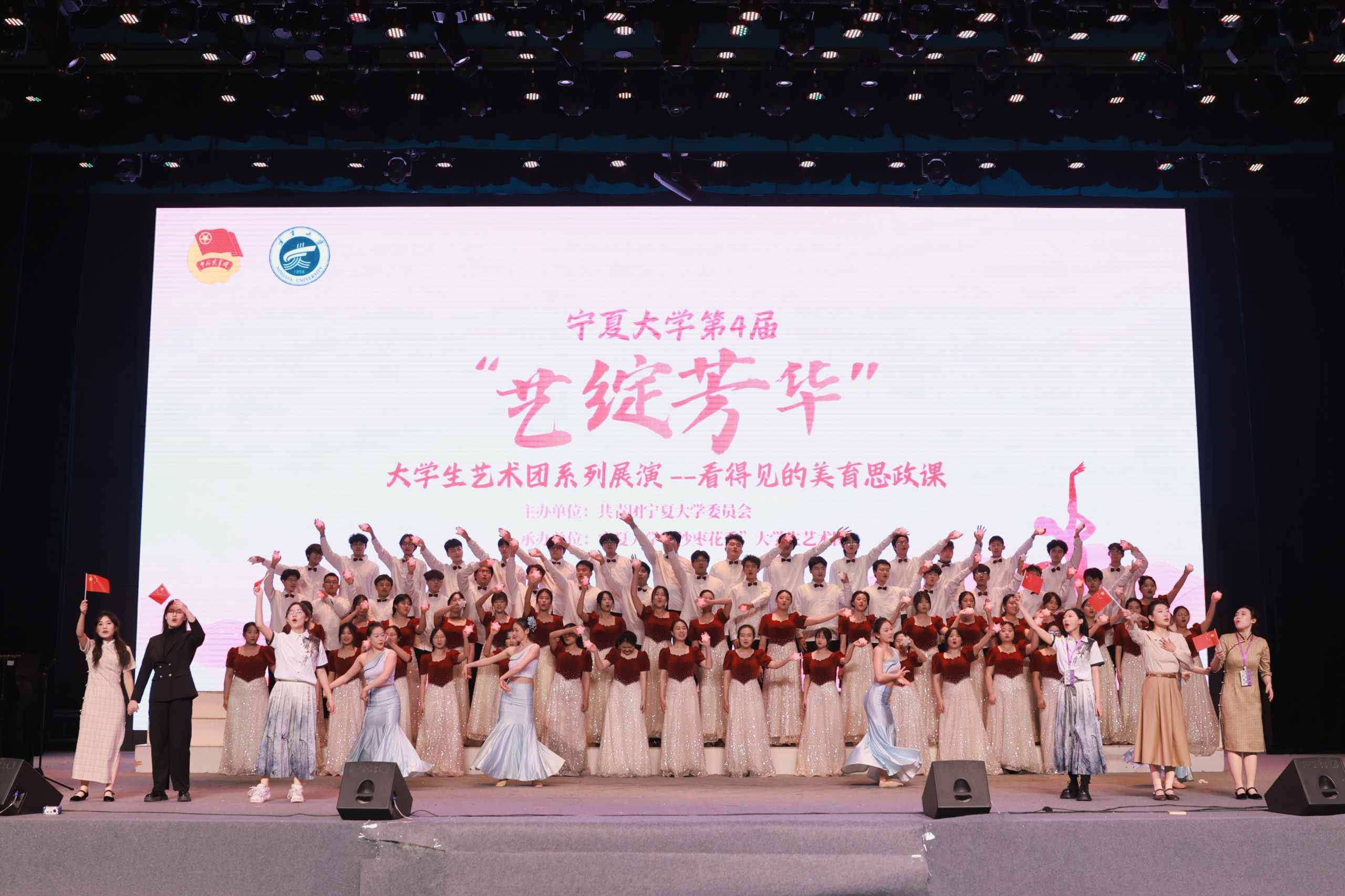 作为一堂集思想性、艺术性、教育性于一体的沉浸式美育思政课,活动汇聚五支优秀艺术团体,通过舞蹈、朗诵、情景剧、相声、走秀、合唱等多元艺术形式,将家国情怀、理想信念融入生动演绎,为全校师生呈现了一场内涵丰富、精彩纷呈的青春文化盛宴。现场掌声雷动、氛围热烈,充分展现了宁大学子昂扬向上的精神风貌与蓬勃的青春活力。