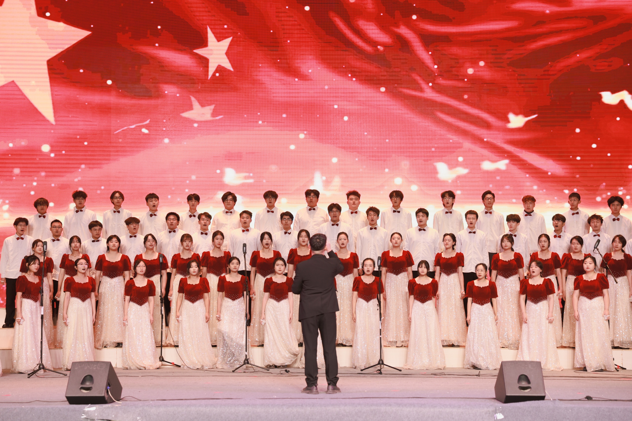 第一篇章“红色根脉・薪火传”以艺术为载体,回溯革命岁月、颂扬民族脊梁,将传统礼义与红色基因融入节目编排,以历史为脉络、以艺术为灵魂,引导青年学子在红色文化浸润中感悟信仰力量,传承红色薪火。
