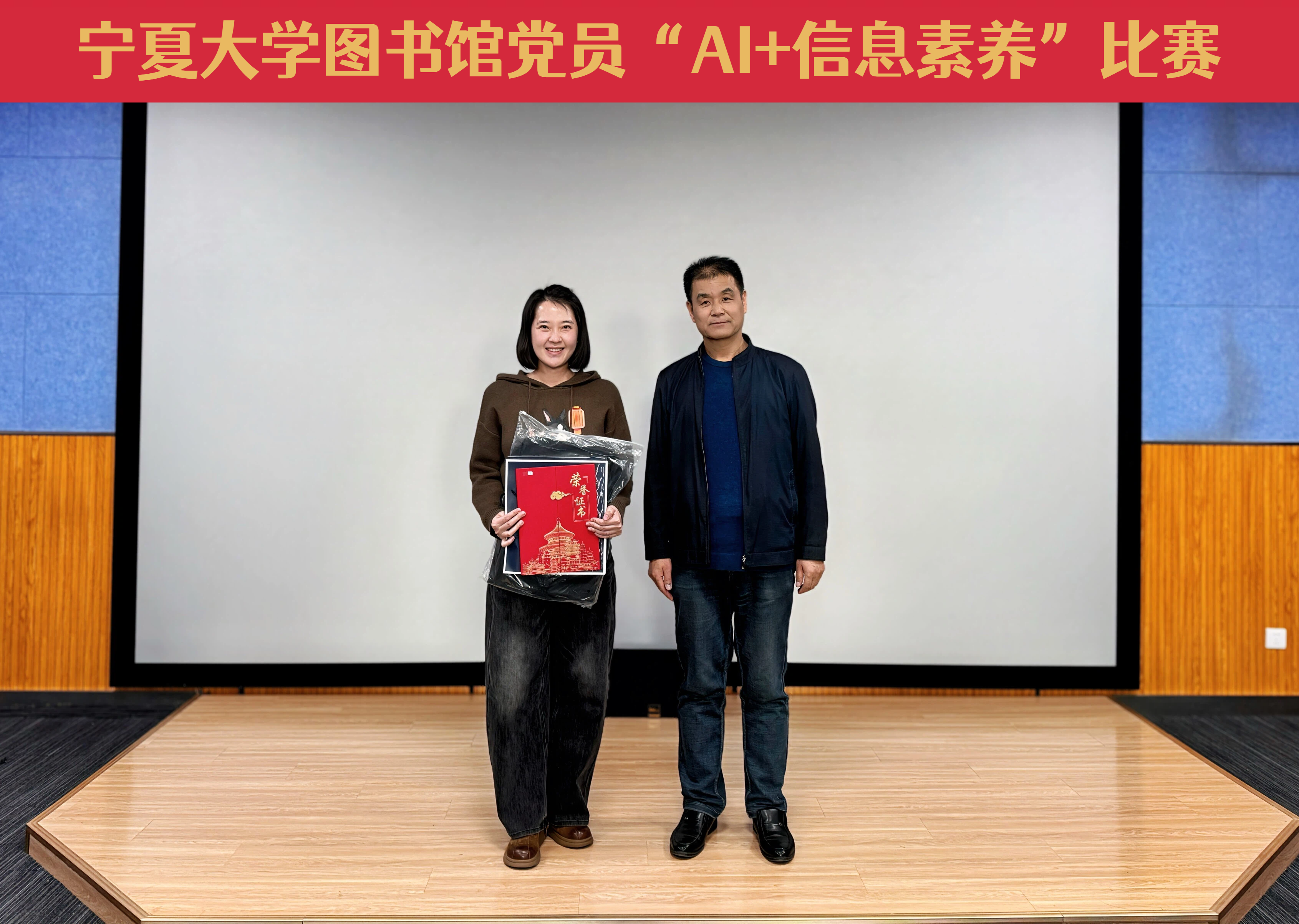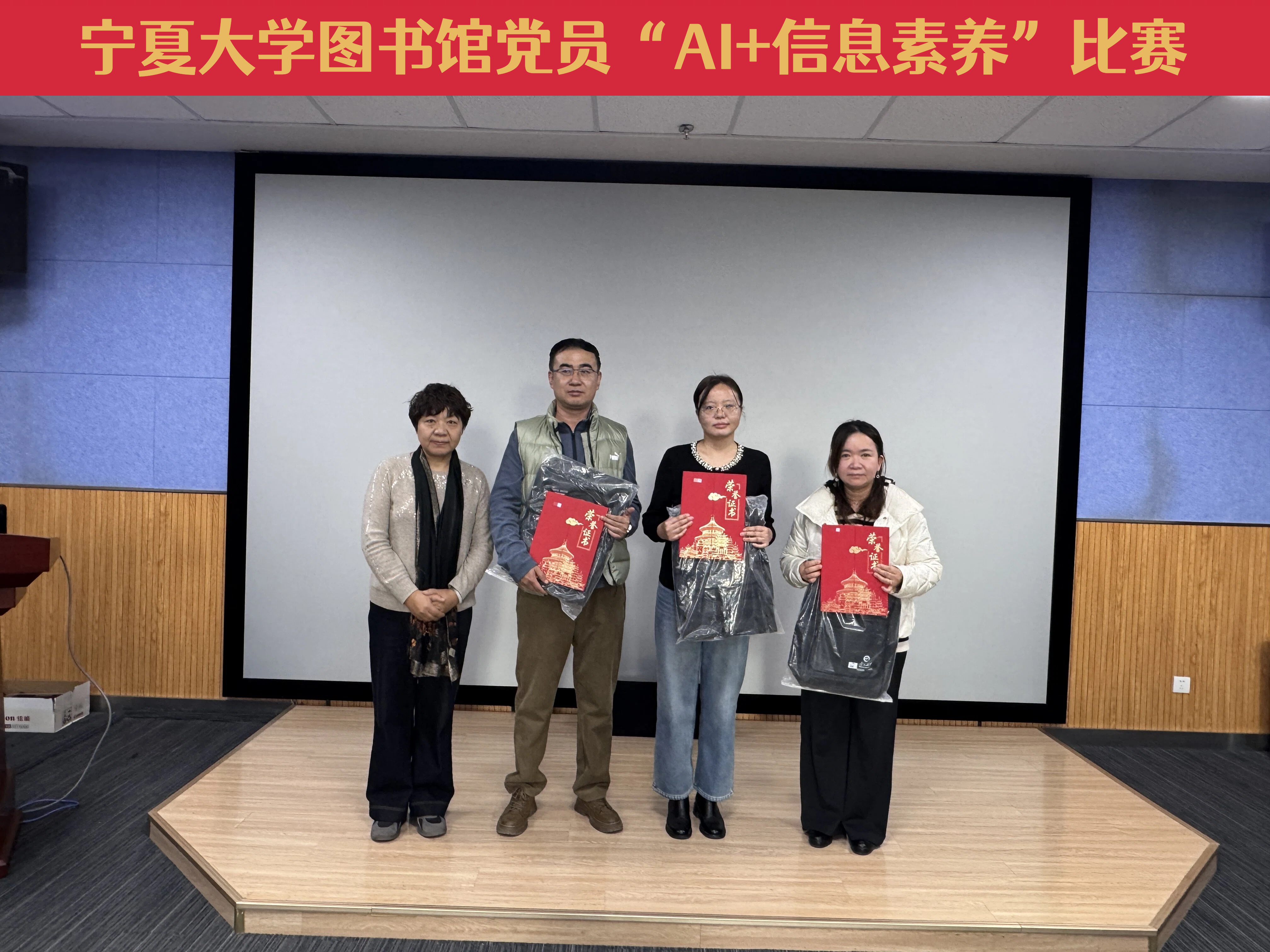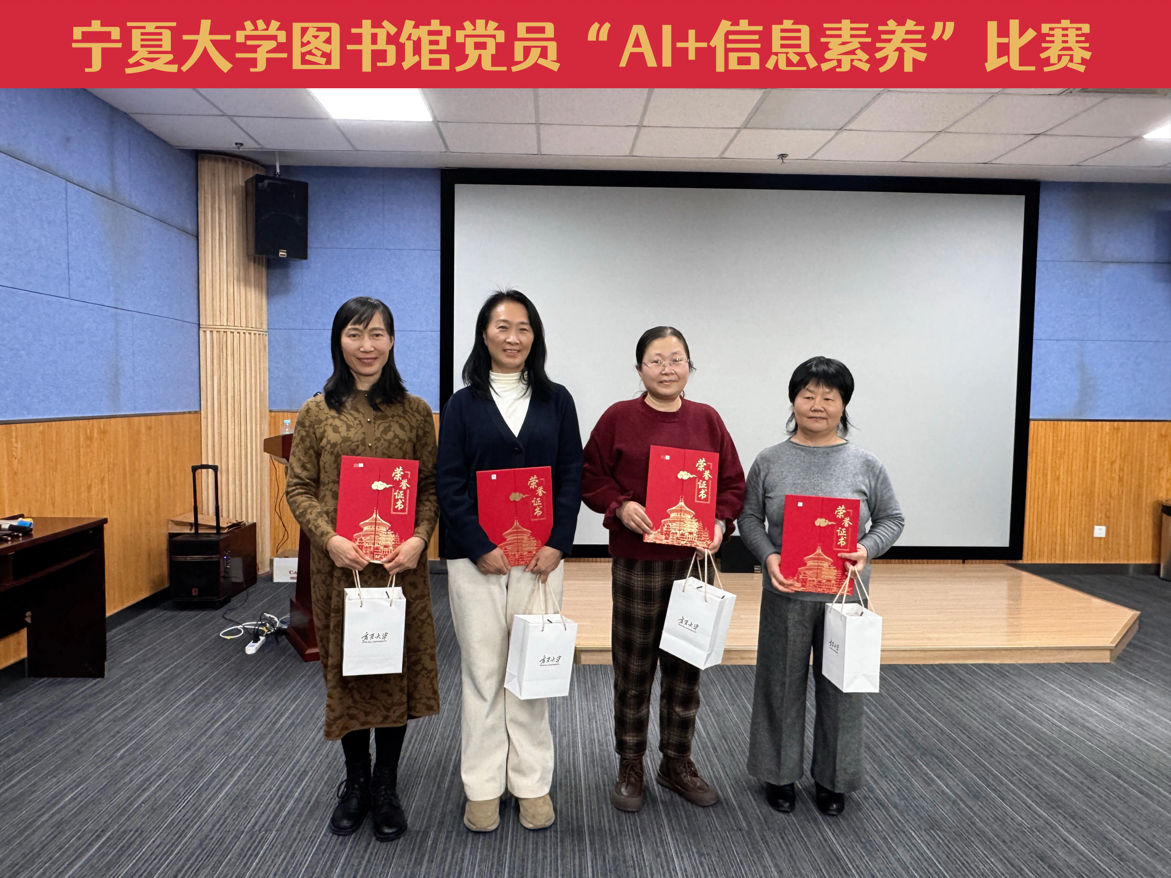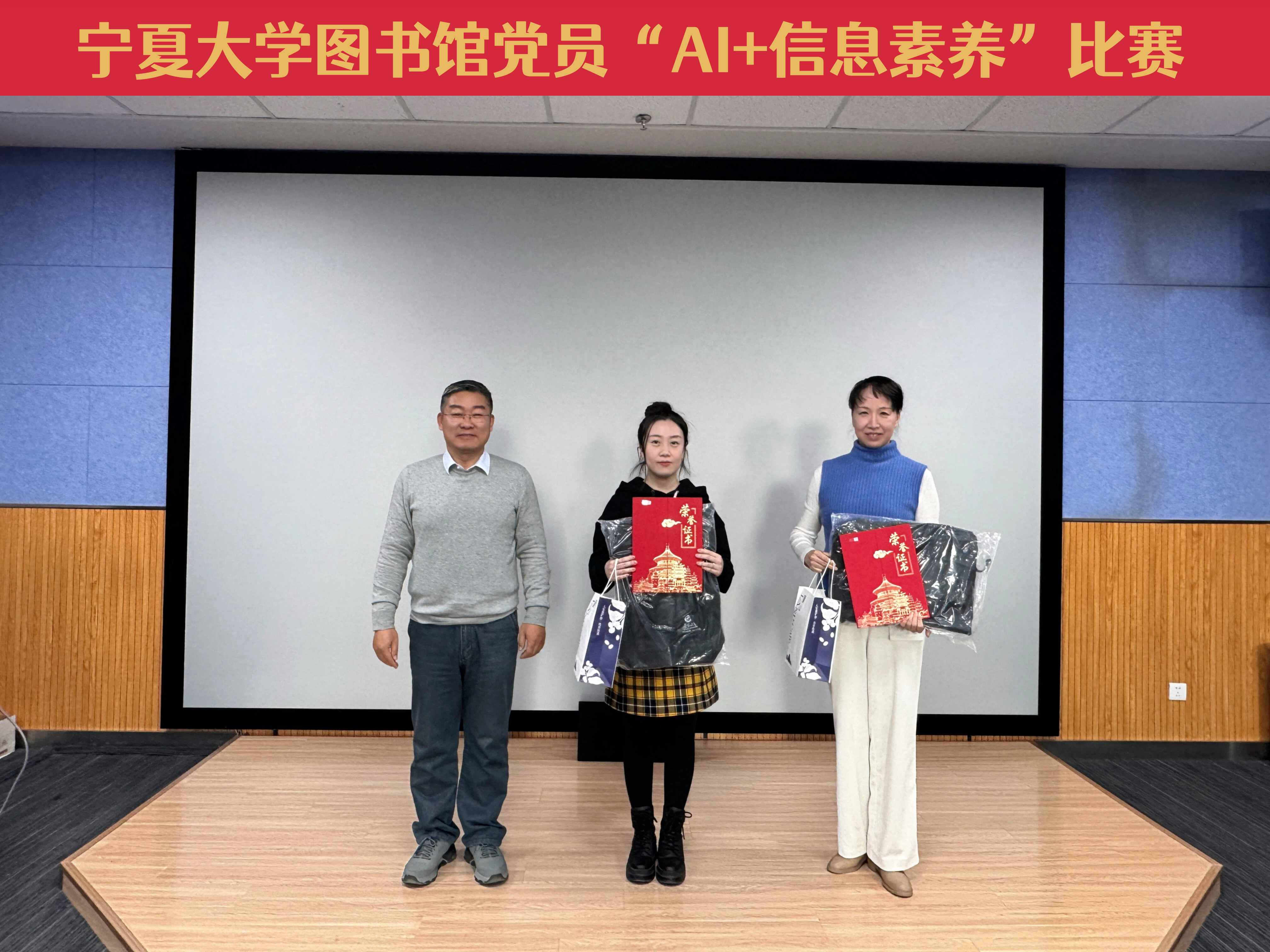 【beat365唯一官方网站新闻中心讯 图书馆】12月17日,图书馆党员“AI+信息素养”比赛颁奖会在文萃图书馆四楼报告厅举行。