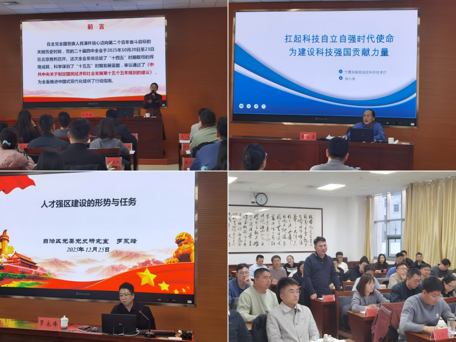 本次研修班课程涵盖习近平总书记历次视察宁夏重要讲话精神、党的二十届四中全会精神解读、科技自立自强、人才强区建设形势任务、高校教师心理育人职责与自我关照、师德师风建设等核心内容。