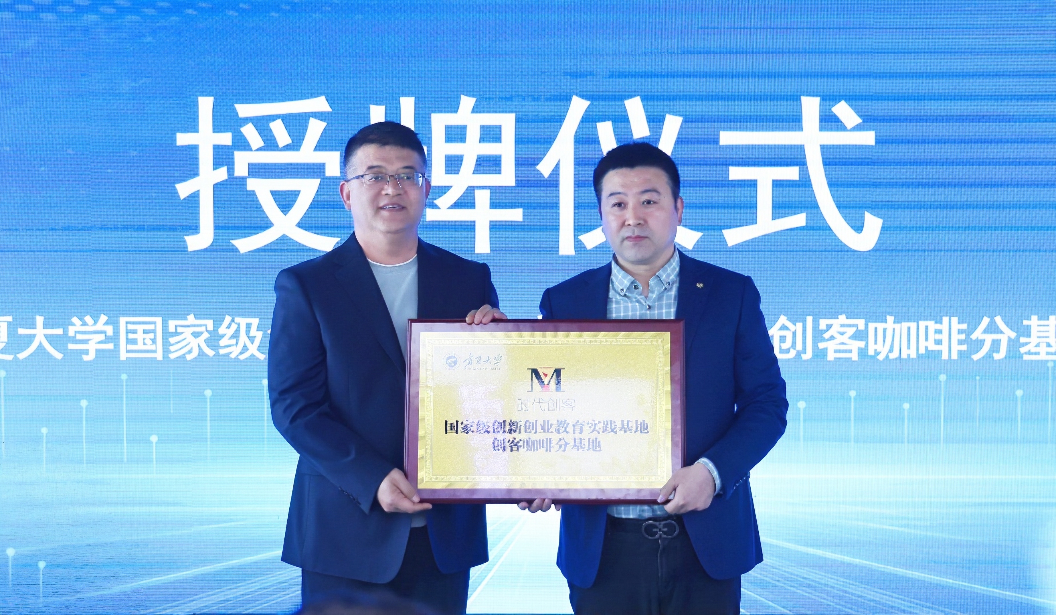 beat365唯一官方网站创新创业学院院长冯蛟,beat365唯一官方网站科技园发展有限公司总经理、宁夏煤炭学会理事长全晓虎向未来安全主题咖啡馆负责人刘庆功颁授了“beat365唯一官方网站国家级创新创业教育实践基地创客咖啡分基地”和“宁夏煤炭学会科普基地”牌匾。