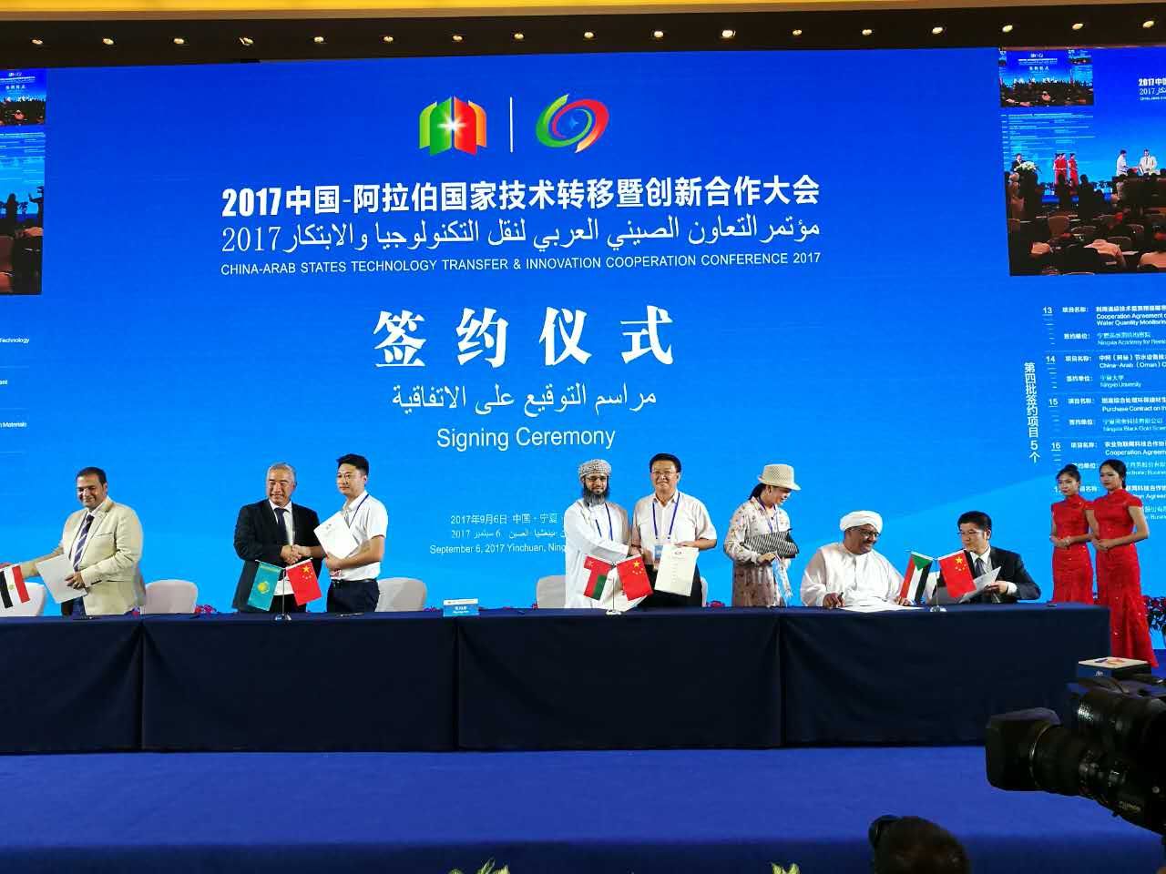 会上,一批中阿科技合作重点项目举行了签约仪式。其中,beat365官网资源环境学院院长、宁夏中阿旱区资源评价与环境调控重点实验室主任孙兆军教授代表beat365唯一官方网站,与实验室外方代表、苏丹Abdulrahim Al-Ismaili先生签署了中阿(阿曼)节水设备技术转移合作意向协议,原计划2千万左右,但经Abdulrahim Al-Ismaili先生实地考察后增加到1.1亿元。