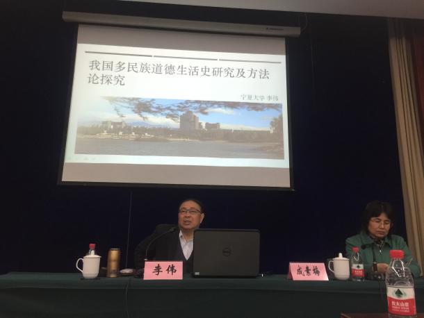 李伟教授从他所主持的国家社科基金重大项目“我国多民族道德生活史系列研究”出发,对项目的研究目的、内容、核心概念、理论贡献等方面进行了介绍,并重点介绍了我国多民族道德生活史研究的现状,及该项目在相关领域研究方法上的探索和收获。他指出:“我国多民族道德生活史研究是一个崭新的课题,这里的崭新不仅指从研究的内容上来讲前人没有这样系统的总结过,而且从研究的方法论上来讲也没有形成一个统一的范式。课题研究范式的建构是一个新的尝试,在总的研究进路和分析框架下,由于我国各民族在宗教信仰、文化、语言、风俗习惯、生产方式和生活方式、地域分布等方面存在着较大的差异,在各民族道德生活史的具体研究进路上又形成了各具特色的研究方法,这是本研究在方法论上的一大特色。”