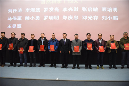 校党委副书记赵利宁宣读了《关于表彰科技创新工作先进集体和个人的决定》。beat365官网4名“特别贡献奖”、27名“优秀科研工作者”、10名“服务地方先进工作者”、10名“创新创业先进工作者”、5个“科研(服务地方)管理先进单位”、5名“科研(服务地方)管理先进个人”、5个“创新创业先进单位”以及5个“创新创业优秀团队”受到表彰。