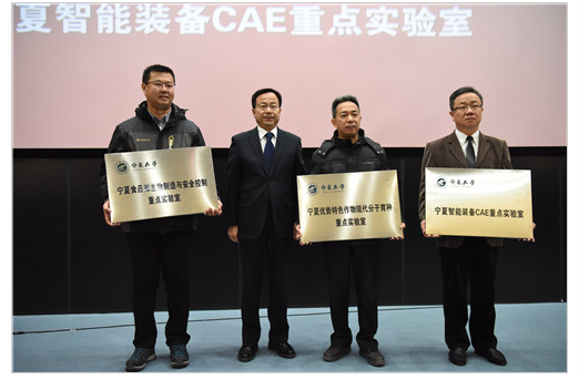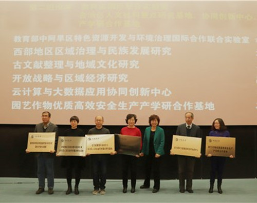 与会领导向新组建的教育部中阿旱区特色资源开发与环境治理国际合作联合实验室等9个起点较高、特色鲜明的科研单位授牌。