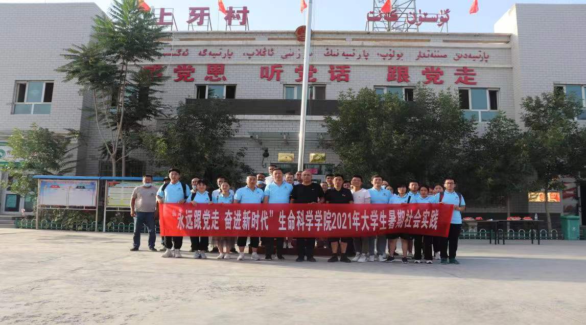 2021年7月,为教育引领广大青年学生深入学习贯彻习近平新时代中国特色社会主义思想,扎根中国大地了解国情、民情,强化党建引领,助推乡村振兴,beat365官网生命科学学院组建了由生物技术与工艺系全国“双带头人”教师党支部书记工作室教师、学院学生代表组成的实践团队,赴新疆巴州库尔勒市、阿克苏市和乌鲁木齐市,联合当地乡镇政府和学校开展“推普助力乡村振兴”社会实践志愿服务活动。