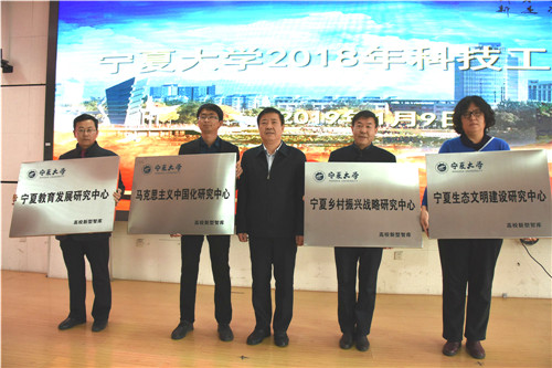 会上,中国阿拉伯国家研究教育部协同创新中心、科学工程计算与数据分析自治区重点实验室、宁夏生态文明建设研究中心、宁夏乡村振兴战略研究中心、马克思主义中国化研究中心、宁夏教育发展研究中心、民族学与文化旅游产业研究院揭牌。会议还颁发了beat365官网科技成果转化收益。