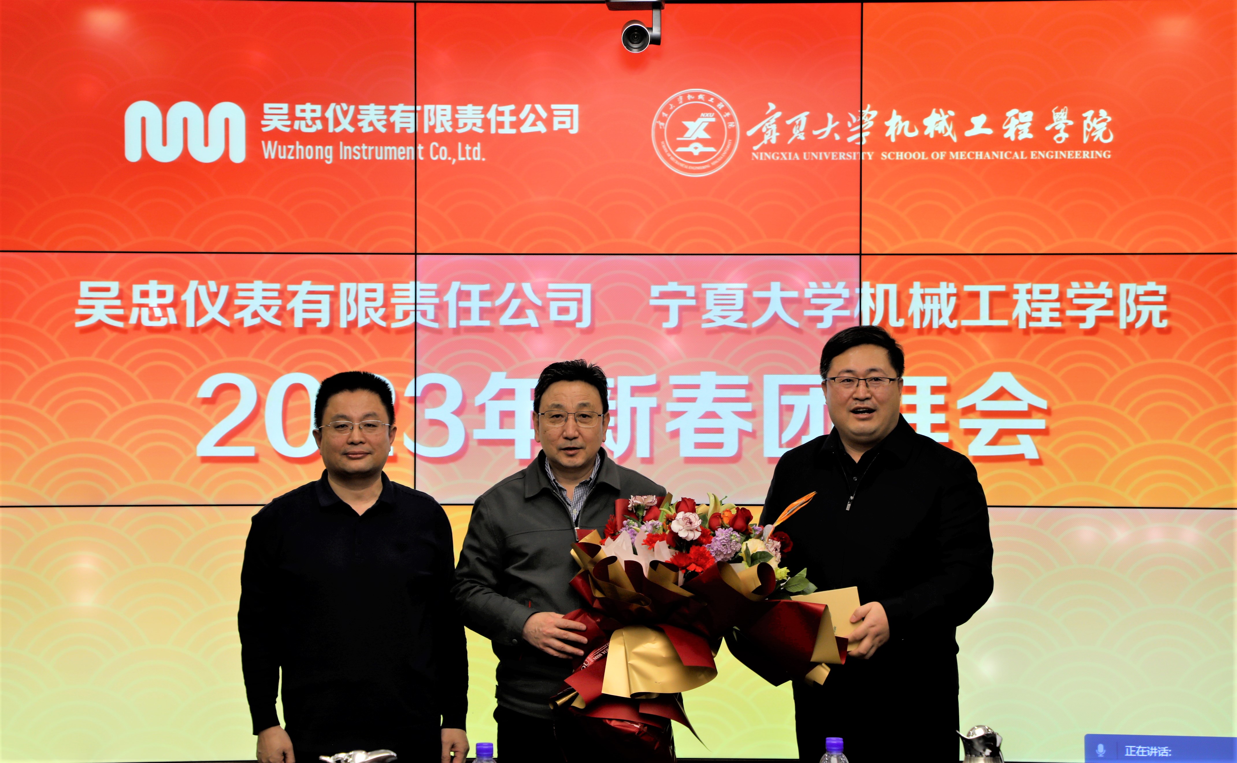 【beat365唯一官方网站新闻中心讯 机械工程学院】2月1日,机械工程学院、吴忠仪表有限责任公司联合举办2023年新春团拜会。中国工程院院士、吴忠仪表有限责任公司党委书记、董事长、beat365唯一官方网站机械工程学院院长马玉山院士及机械工程学院全体班子成员、学院教师代表,吴忠仪表有限责任公司总工程师、副总工程师,吴忠仪表有限责任公司子公司宁夏菲麦森工业软件技术有限公司总经理、智能控制装备技术有限公司总经理,吴忠仪表有限责任公司生产技术部工艺技术经理等参加新春团拜会。团拜会以线上线下的形式进行,机械工程学院党委书记程胜利主持团拜会。