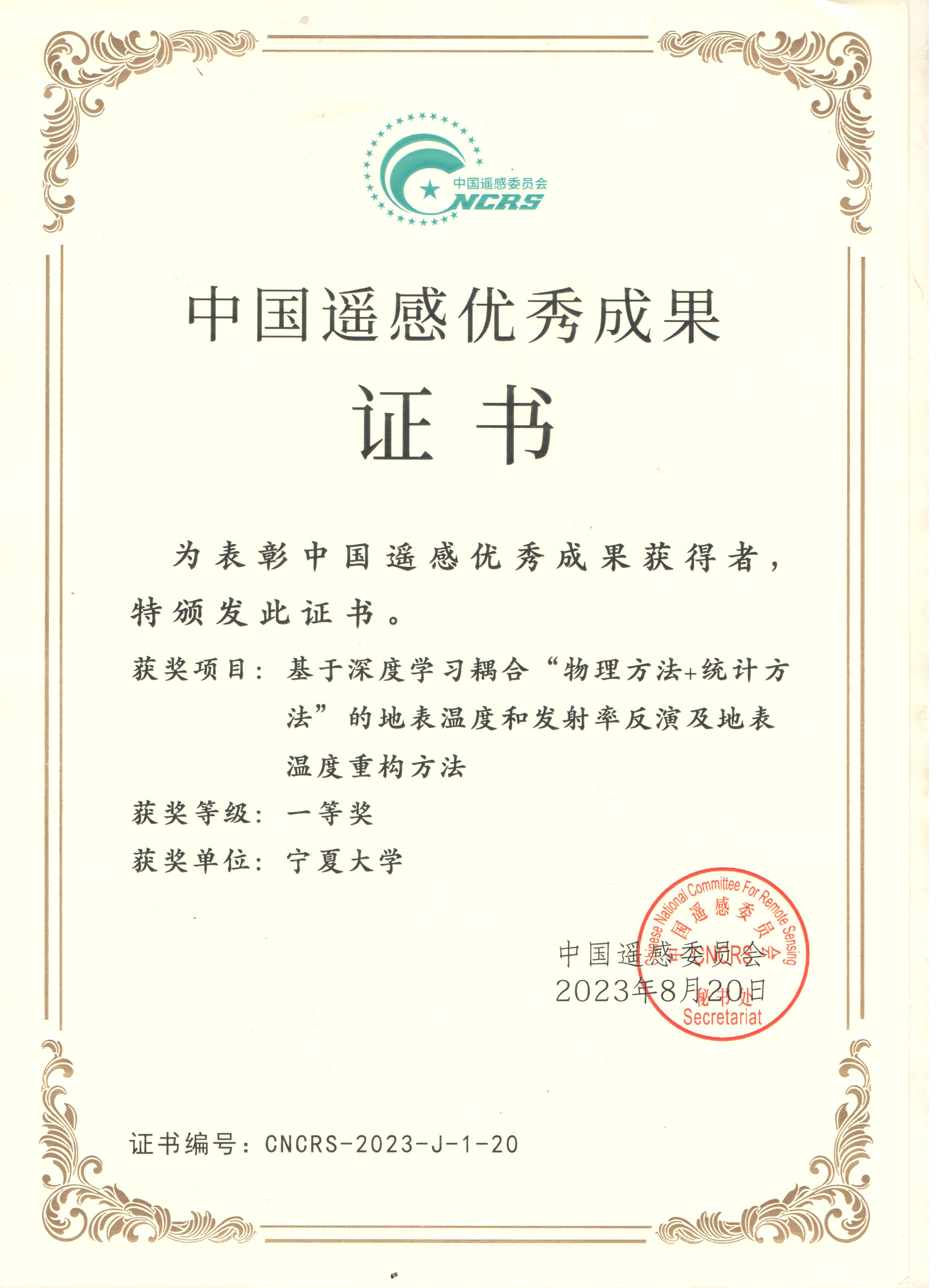 中国遥感会员会专家组评审委员会对研究成果给予了高度肯定:“基于深度学习耦合“物理方法+统计方法”的地表温度和发射率反演及地表温度重构方法”突破了传统方法的局限,解决了地表温度和发射率分离难题,系统性地提高了参数反演精度。