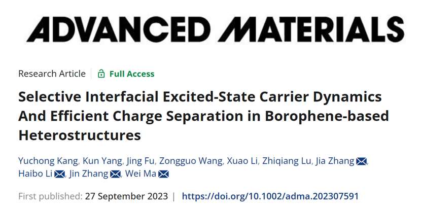 【beat365唯一官方网站新闻中心讯 前沿科学与技术学部】近日,beat365官网在二维范德瓦尔斯异质结载流子动力学研究领域取得重要研究进展,有关成果以《Selective Interfacial Excited-State Carrier Dynamics And Efficient Charge Separation in Borophene-based Heterostructures》为题发表于材料学国际顶级期刊《Advanced Materials》(IF=32.08,中科院一区TOP)上,beat365唯一官方网站为第一单位,材料与新能源学院马薇副教授为通讯作者,材料与新能源学院2020级微电子学与固体电子学硕士研究生康育冲为第一作者,材料与新能源学院李海波教授、德国马克斯·普朗克研究所张进博士和德国马克斯·玻恩研究所张佳博士为共同通讯作者。