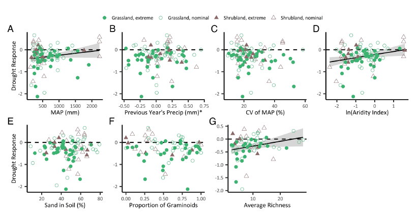 研究成果以“Extreme drought impacts have been underestimated in grasslands and shrublands globally”为题在PNAS(Proceedings of the National Academy of Sciencesof the United States of America)上发表。