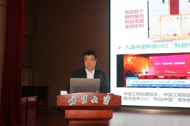 孙宝国院士以《国酒历史、文化与健康》为报告题目,结合我国国酒的发展历史,以简明清晰、通俗而严谨的语言,介绍了国酒的历史和功能,阐释了关于国酒的5个基本观点,以及古人关于酒与健康的论述、文人关于酒的论述等;王强院士以《高水分挤压植物基肉制品科技创新与应用》报告题目,主要针对高水分挤压植物基肉制品存在的植物蛋白原料挤压特性不清、纤维结构形成机理不明、关键核心工艺装备落后等瓶颈问题,围绕植物蛋白原料挤压适宜性评价、蛋白质纤维结构形成与调控机制、高水分挤压关键技术与核心装备创制、营养健康植物基肉制品系列产品开发等内容,系统阐述高水分挤压新型植物基肉制品的最新研究进展;赵谋明教授的《功能性肽研究进展与主动健康》报告介绍了多项功能性肽制备关键技术,对显著提高蛋白原料的利用率、提升产品的功效,明确了功能因子和作用机制,以及成功开发出的10余种具有改善记忆、降尿酸、抗疲劳、美容或改善睡眠等功效显著和功能因子明确的系列功能性肽产品。