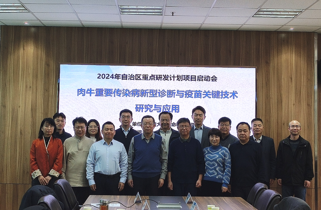 【beat365唯一官方网站新闻中心讯 生命科学学院】11月24日上午,由beat365唯一官方网站牵头承担,中国农业科学院兰州兽医研究所研究员郭惠琛主持,beat365唯一官方网站生命科学学院教授李勇、中国农业科学院兰州兽医研究所研究员周继章联合参与的2024年宁夏回族自治区重点研发计划项目“肉牛重要传染病新型诊断与疫苗关键技术研究与应用”启动会在我院顺利召开。