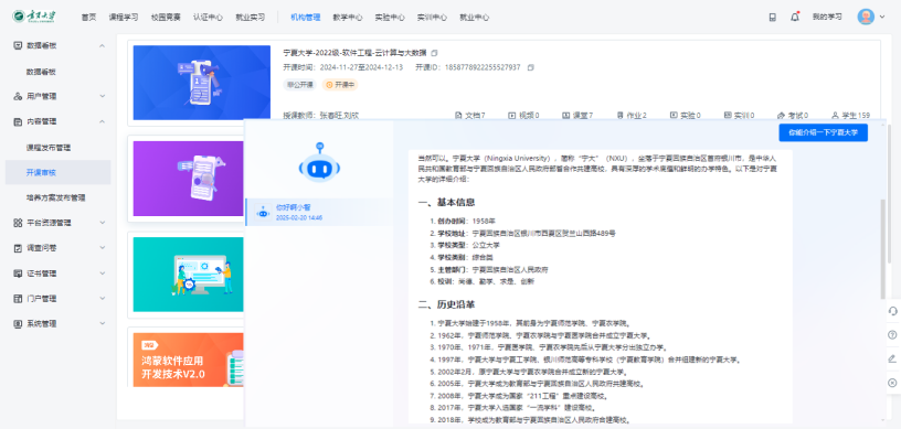 平台上线后,学院将全面应用“智云数智平台”开展智能化教学实践,通过AI技术重构课堂互动、学情分析与资源推荐,实现教学效率与质量的跨越式提升。教学副院长马强认为:“此次Deepseek的嵌入,进一步提升了教学效果,减轻了教师负担,是产教融合、科教融汇的典范。未来,我们将进一步探索虚拟数字人讲师、动态知识图谱等创新功能,为培养符合产业需求的复合型人才提供坚实支撑。”