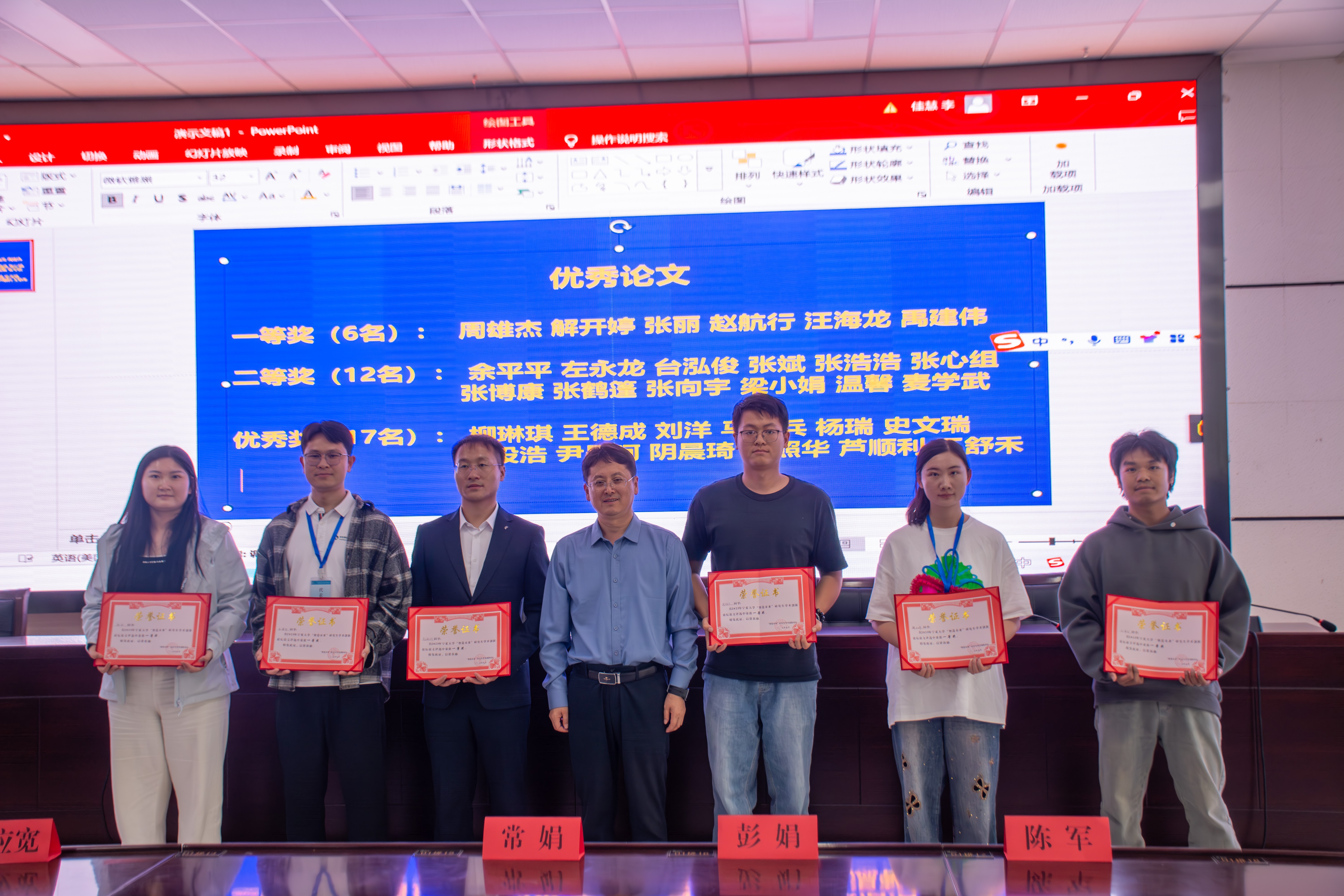 分会场报告结束后,在文荟楼报告厅举行了颁奖仪式,对评选出的优秀论文、优秀墙报及优秀口头汇报获奖者进行了表彰。