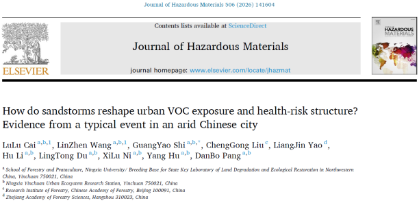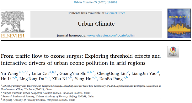 【beat365唯一官方网站新闻中心讯 生态环境学院】近日,《beat365唯一官方网站学报(自然科学版中英文)》青年编委、beat365唯一官方网站生态环境学院施光耀副教授围绕干旱区城市大气环境污染形成机制、健康风险及协同治理等前沿问题,2026年1-3月,连续在国际高水平期刊Urban Climate、Journal of Hazardous Materials和Transportation Research Part D 发表3篇学术论文。系列研究依托宁夏银川城市生态系统定位站,立足宁夏银川典型干旱区城市生态环境特征,聚焦交通活动、沙尘天气与城市大气复合污染之间的耦合关系,系统揭示了臭氧(O₃)、细颗粒物(PM2.5)和挥发性有机物(VOCs)在干旱环境中的关键驱动机制,为干旱区城市空气污染精准防控和健康风险管理提供了重要科学支撑。