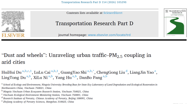 在发表于 Transportation Research Part D 的论文中,研究团队围绕干旱区城市交通活动与PM2.5污染之间的耦合机制开展研究。通过整合交通流、气象条件和多污染物同步监测数据,研究发现银川路侧PM2.5、黑碳和二氧化氮在夜间及清晨浓度较高,表现出显著的交通排放影响特征。