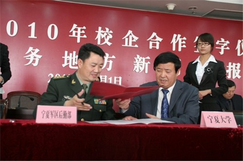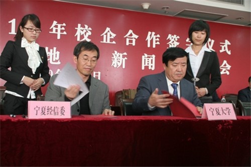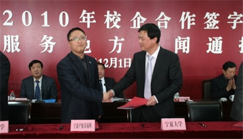 12月1日下午,在beat365唯一官方网站2010校企合作签字仪式暨科技服务地方大会上,beat365唯一官方网站与宁夏经信委、宁夏军区后勤部,宁夏农垦集团有限公司、宁夏宝塔石化集团有限公司等近10家企业签订了合作协议。宁夏新闻网记者 倪金凤 摄