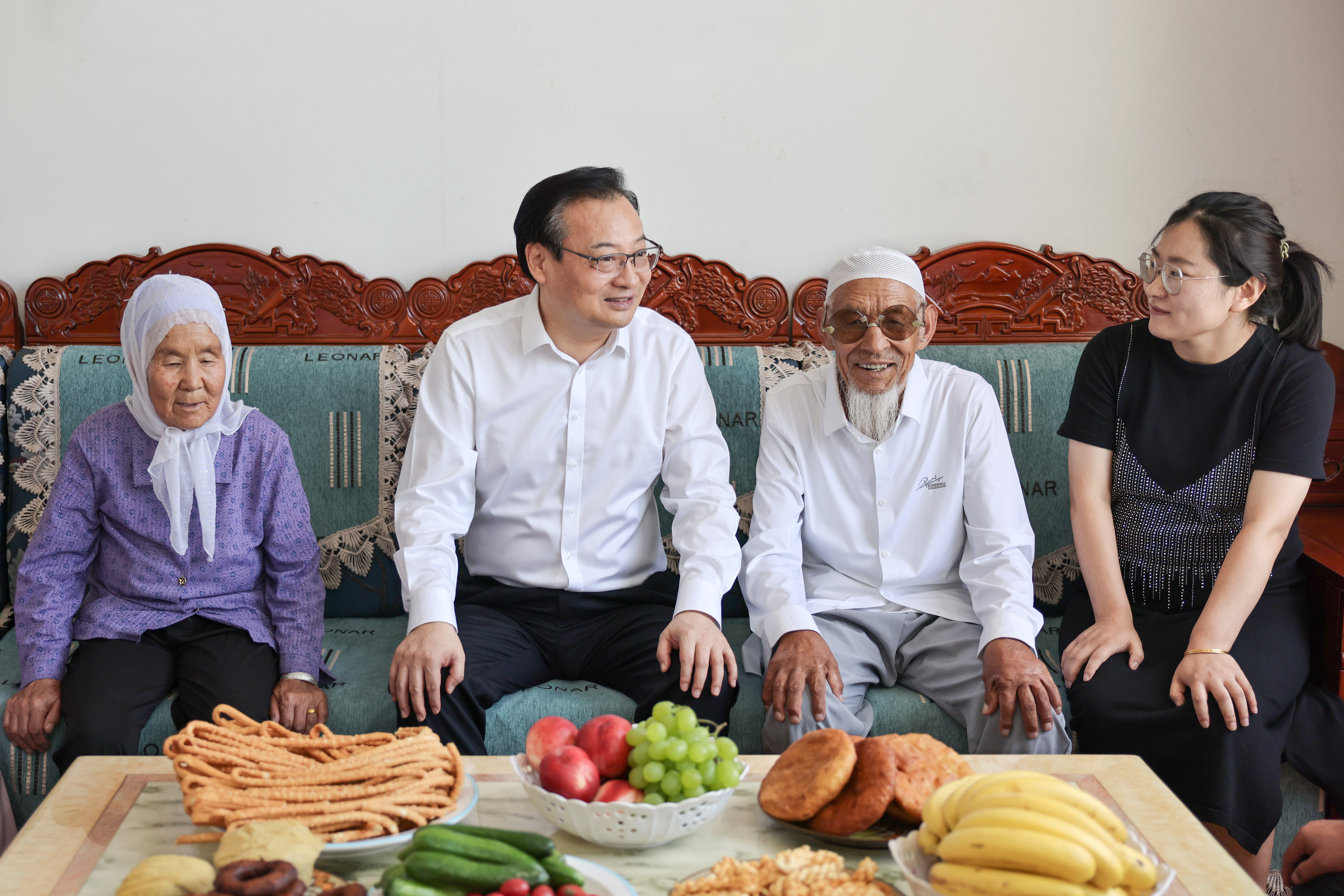 6月14日,梁言顺在银川市金凤区清水湾社区,看望慰问银川市民族团结进步先进个人王辉。