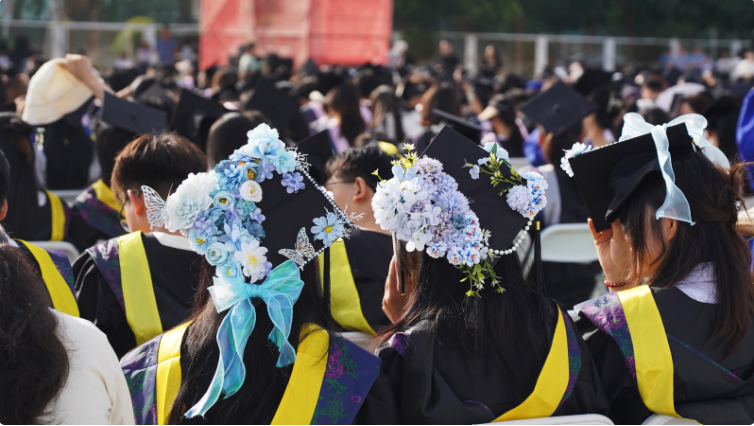 在每个学院举办学位授予仪式的分典礼台前,毕业生排队上台从学院院长手中接过毕业证书。院长亲手为每一位毕业生拨穗,这一刻,标志着他们圆满完成了大学学业。典礼结束,亲朋好友纷纷为毕业生们送上鲜花,表达对他们的祝福和鼓励。