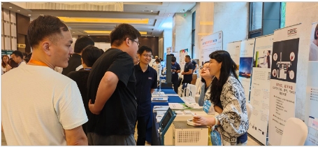 会场外,行业人员趁着休息间隙和参与企业进行交流。