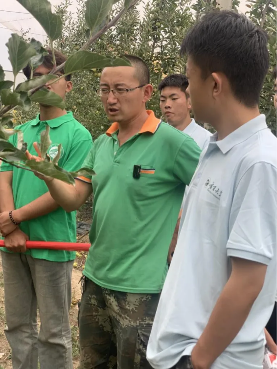 该园区主要种植了嘎啦、红蛇和蜜脆三个苹果品种,丰年可达800万公斤以上,年纯收入可达3600万元以上,在促进乡村振兴的道路上发挥了至关重要的作用,在当地具有巨大的影响力。该基地技术人员向实践团讲解了塬上独有的气候条件,并从温度、湿度、土壤、设施、技术等方面,和实践团进行了深入交流和探讨。