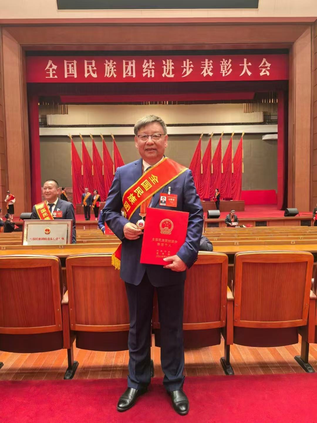 杜建录作为“全国民族团结进步模范个人”称号获得者领奖