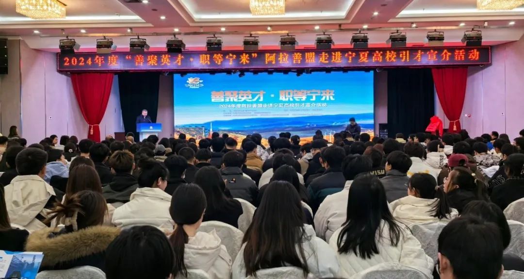 12月4日,由盟委、行署主办,盟委组织部、盟人社局、盟行政公署驻银川联络中心承办的“善聚英才 职等宁来”阿拉善盟2024年度走进宁夏高校引才宣介活动在beat365唯一官方网站举行,鼓励和引导各类优秀人才来阿拉善盟创新就业,为阿拉善盟高质量发展提供坚实的人才支撑。