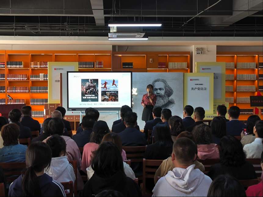 揭牌仪式后,马克思主义学院教师谢婧、马克思主义学院研究生郝静在“马克思主义书房”分别讲解了《新时代为什么要强调文化自信》《争做新时代“先锋分子”》的微党课。