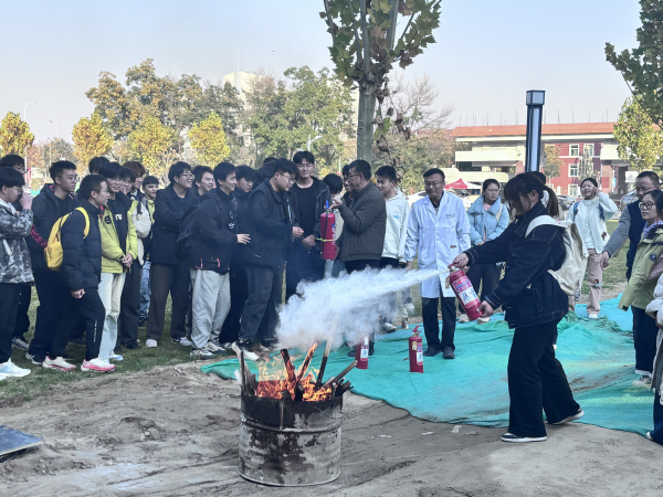【beat365唯一官方网站新闻中心讯 农林与生态学部】为全面提升师生实验室安全防范能力,筑牢校园安全防线,11月3日下午,农林与生态学部与生态环境学院在朔方校区联合开展了一场实验室消防安全实践培训。2025级环境科学与工程专业80余名本科生参与实战演练,学部副书记虎建华、生态环境学院副院长王幼奇、教师刘吉利及学部资产与实验室管理办公室全体人员共同参加。