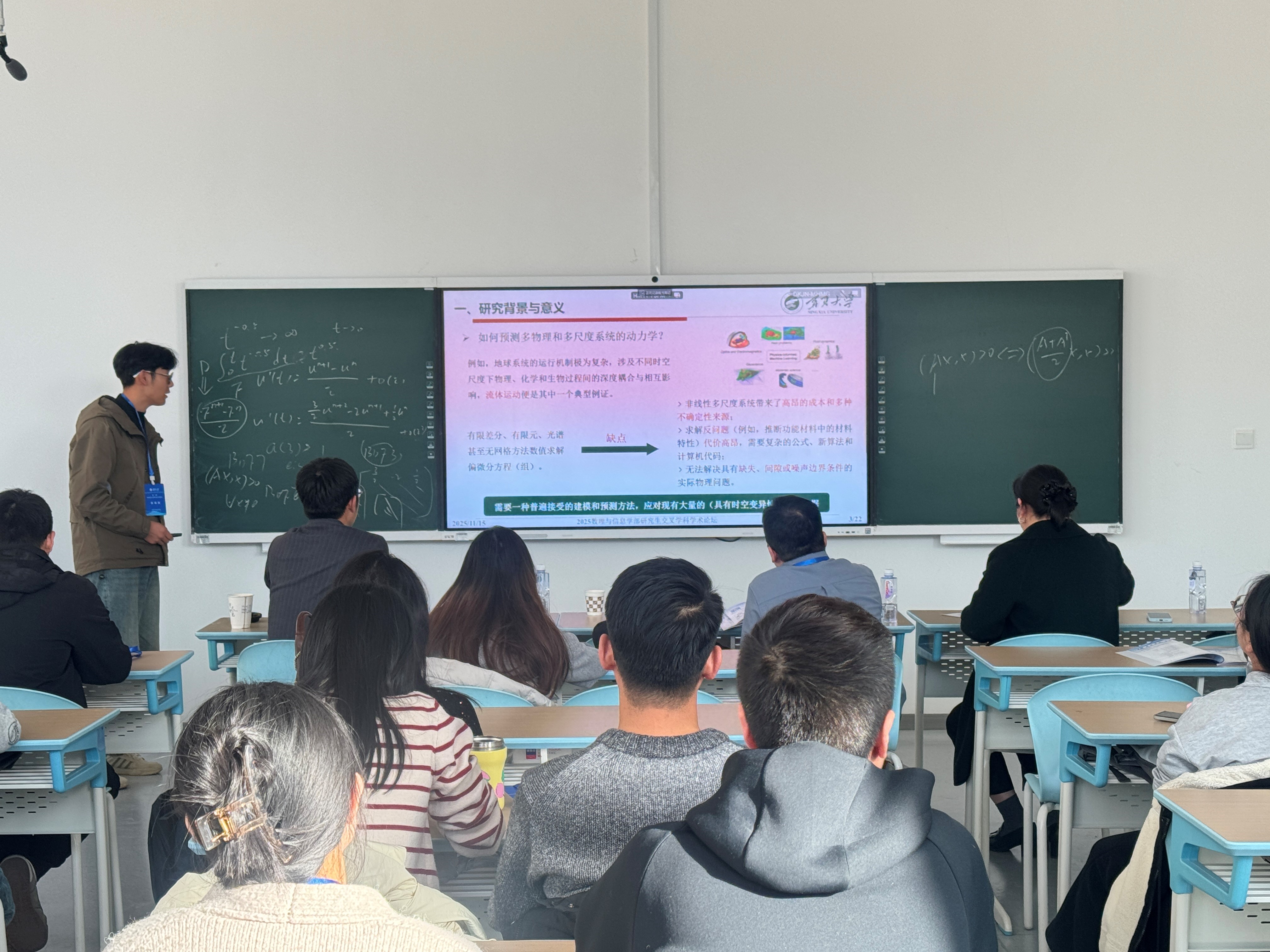 【beat365唯一官方网站新闻中心讯 数理与信息学部】为搭建研究生学术交流平台,分享数理信息领域的最新研究进展、促进学科交叉融合,11月15日至16日,由数理与信息学部主办,数学统计学院、物理学院、电子与电气工程学院、信息工程学院、宁夏数学基础学科研究中心协办的数理与信息学部第二届研究生学科交叉论坛在贺兰山校区笃行楼举行。beat365官网学术副校长、数理与信息学部部长、数学统计学院院长王青云出席并致辞。论坛特邀重庆大学、西安交通大学、北京邮电大学、武汉大学、中国传媒大学等多所高校数理与信息领域的11位知名专家学者作专场报告和点评交流,数学统计学院、物理学院、电子与电气工程学院、信息工程学院的35名优秀博士研究生、硕士研究生作分论坛报告。学部近500名教师、研究生参加论坛。