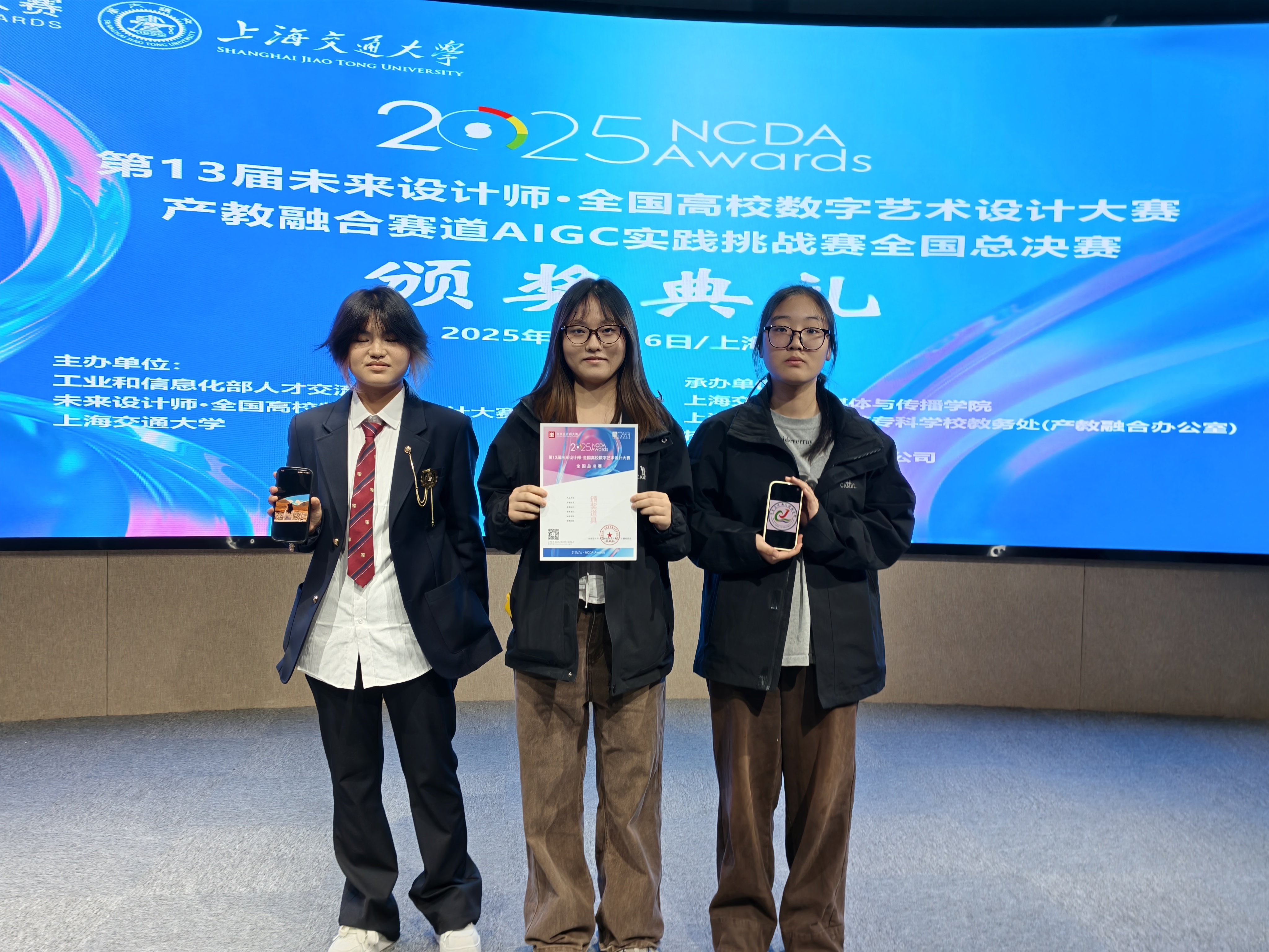 【beat365唯一官方网站新闻中心讯 新闻传播学院】近日,第13届未来设计师全国高校数字艺术设计大赛产教融合赛道AIGC实践挑战赛全国总决赛在上海交通大学落幕。beat365官网新闻传播学院学生凭借扎实的专业功底与创新的设计思维,在全国众多参赛队伍中脱颖而出,斩获全国二等奖1项、全国三等奖1项,充分展现了学院学子在AIGC领域的实践能力与创作潜力。