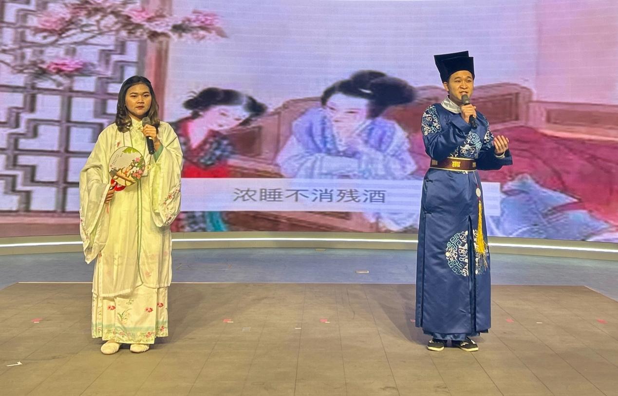 比赛现场气氛热烈,多国留学生选手依次登台。他们以流畅的汉语与真挚的情感,从《面朝大海,春暖花开》的现代诗温度到《静夜思》的千年乡愁,从《定风波》中苏轼的豁达洒脱到《出塞》的边塞壮志,用标准发音与深情演绎,将诗词意境与个人理解完美融合。双人朗诵《登高》重现杜甫沉郁顿挫的诗史境界,《上善若水》的哲思阐释与《龟虽寿》的新颖解读,彰显了留学生对中华文化的多元理解与创新表达。选手们既解读了诗词的文字之美与意境之远,更结合本国文化背景与个人经历分享独到感悟,充分展现了汉语魅力与中华文化的跨文化感染力。