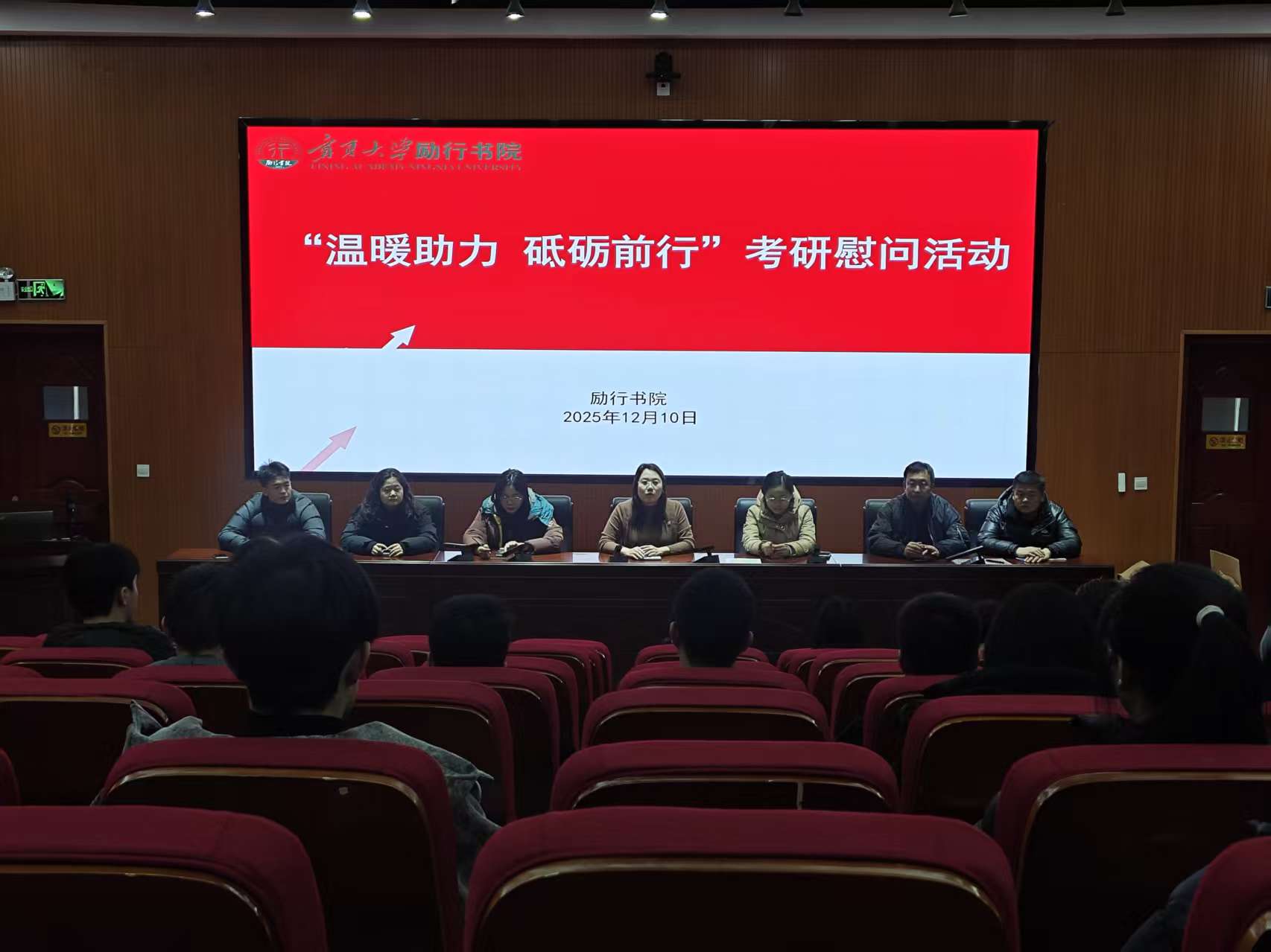 12月10日下午,在知行楼一楼报告厅举行考研慰问活动,书院副院长王娜和毕业班辅导员为考研学生代表送去考研大礼包。一份实用的考研暖心礼包,一句句温暖的询问,传递着书院始终与学生并肩同行的支持。