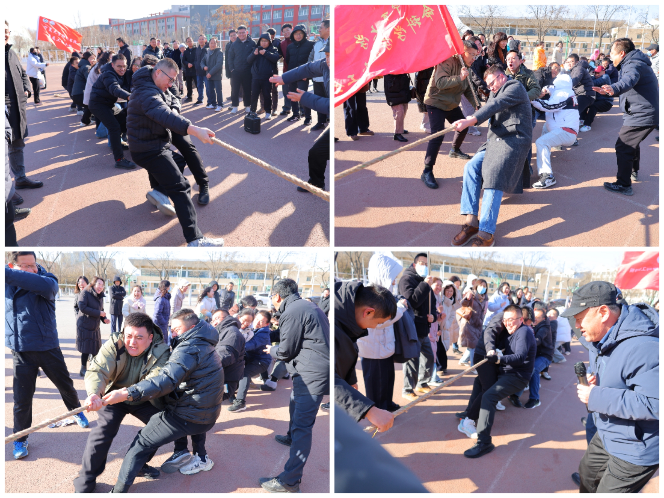 拔河比赛在文萃校区操场热闹开赛。大家并肩发力、奋勇拼搏,用汗水书写团结力量,用热血诠释责任担当。比赛现场,人声鼎沸、暖意融融,欢呼声、呐喊声、加油声此起彼伏,充分展现了学校教职工的良好精神风貌。