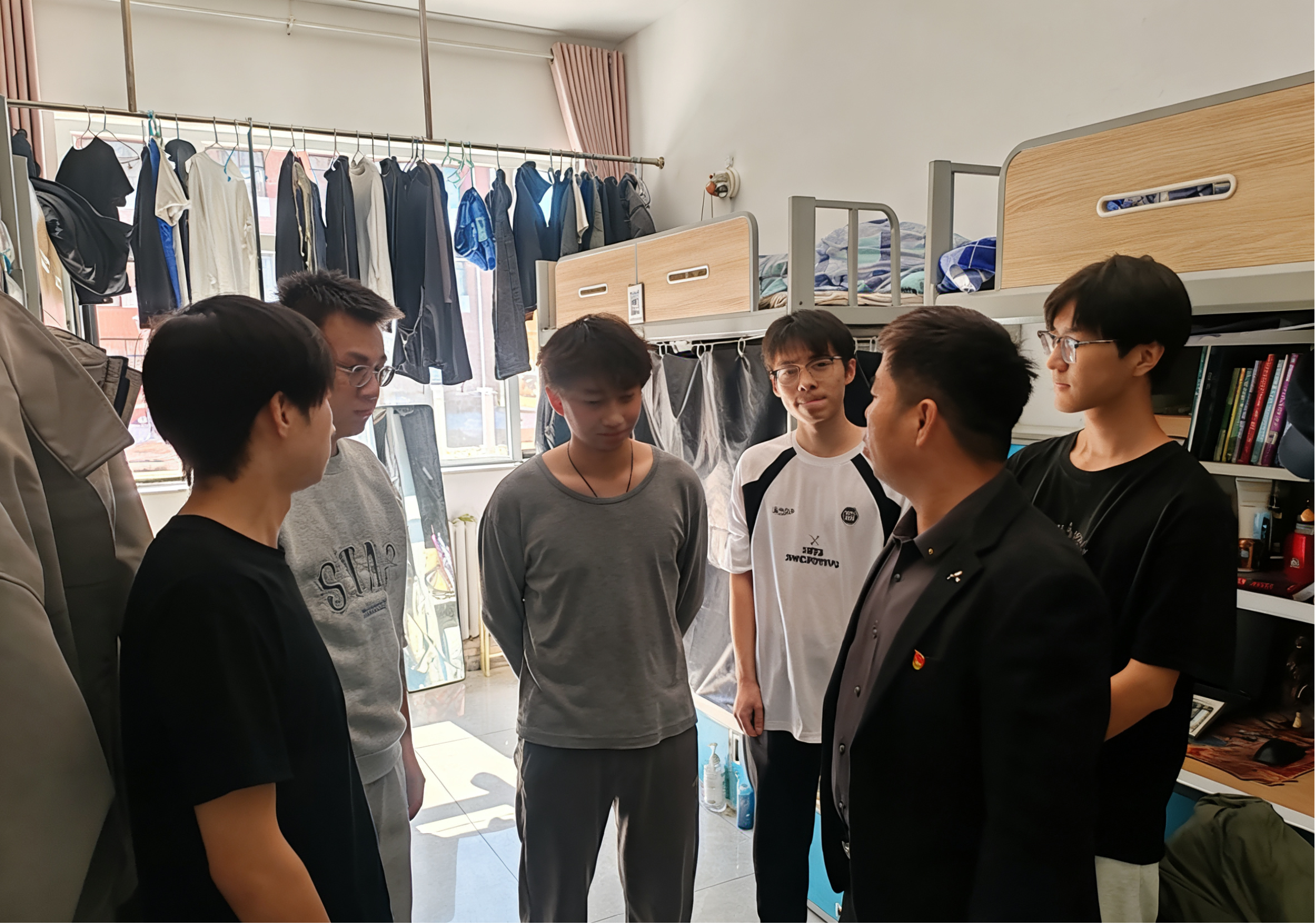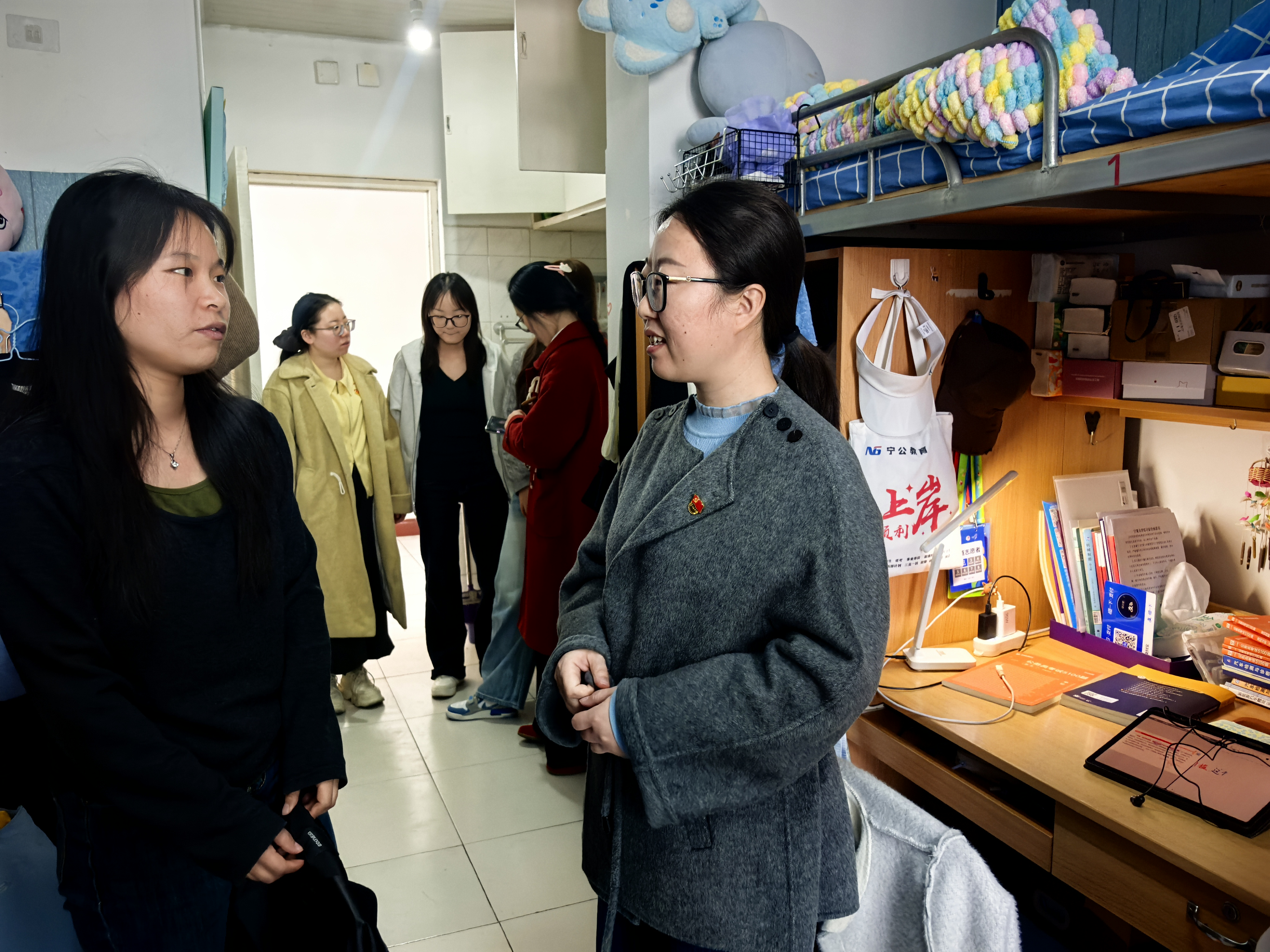 此次活动将树立和践行正确政绩观学习教育贯穿全程,书院党委紧扣“暖人心、促育人”核心,把锤炼党员党性修养、树立正确政绩观作为重要目标,结合校区楼栋实际分组,由书院党委班子带队,重点深入低年级、毕业班及特殊困难学生宿舍,以“四个一”任务推动学习教育走深走实。走访中,师生党员与学生面对面交流,送上组织问候,及时掌握学生返校后的思想、学习与生活状况,以拉家常方式倾听学生在考研就业、学业发展、人际交往等方面的困惑,广泛收集书院管理服务等意见建议。与此同时,依据学校安全稳定会议精神开展微宣讲活动,引导学生防范并抵制校园宗教活动,在校内严禁使用大功率电器等。