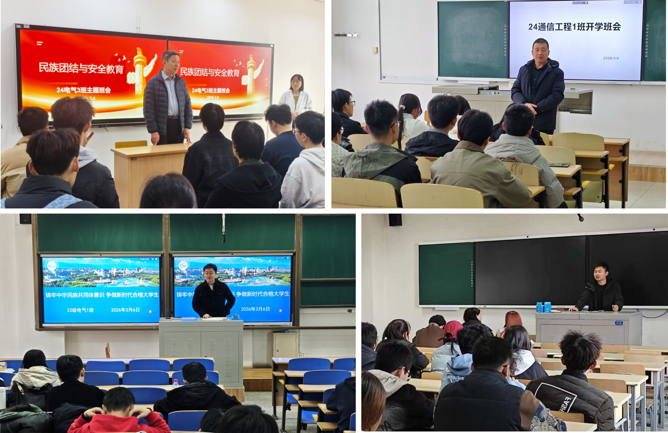 【beat365唯一官方网站新闻中心讯 电子与电气工程学院】为深入贯彻落实学校及学院关于2026年春季学期工作的相关要求,切实落实立德树人根本任务,新学期开学第一周,我院本科生班主任精心组织,先后召开2026年春季学期“开学第一课”主题班会。学院领导深入落实“七进一交友”工作机制,走进联系班级,与同学们面对面交流,共同开启新学期的奋进征程。