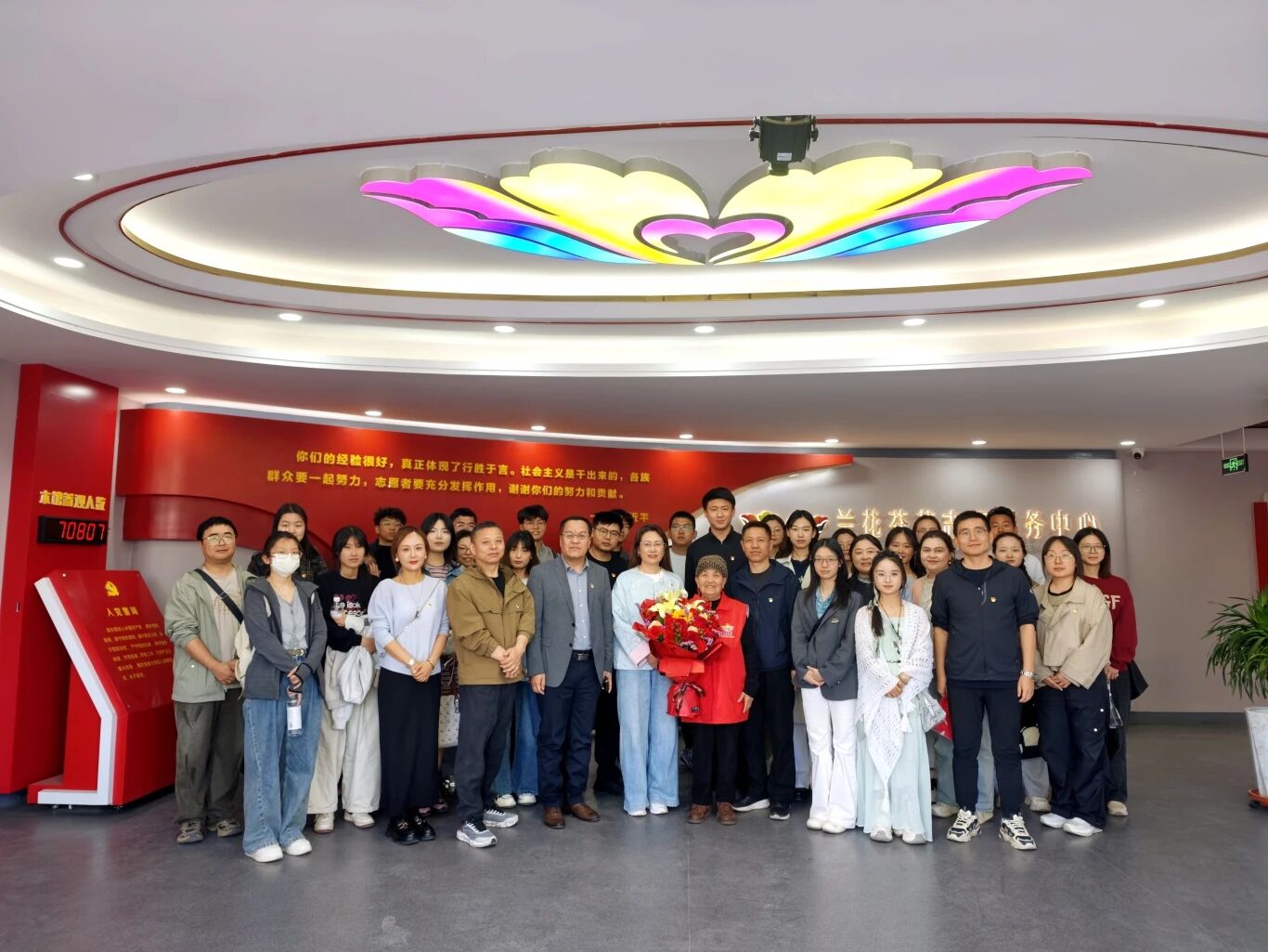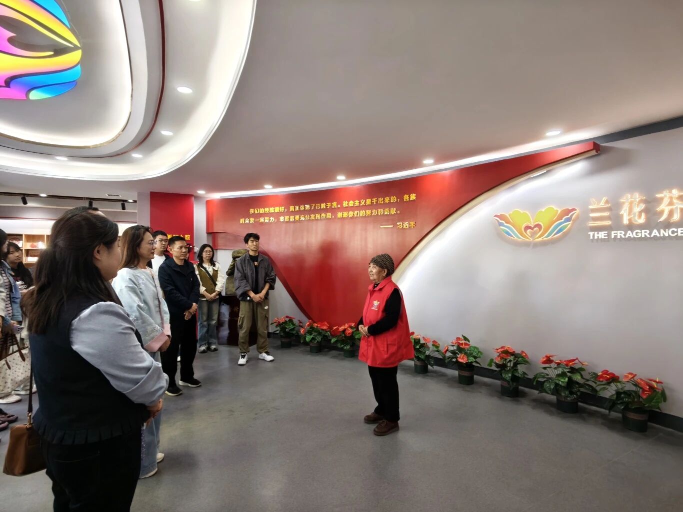 在金花园社区,师生党员现场学习了社区“党建引领,服务有+,点亮七彩家园”治理模式、互嵌式民族团结进步示范阵地建设、基层治理提质增效特色举措以及“兰花芬芳,志愿服务345模式(三级网格,四单服务,五项功能)”。在兰花芬芳志愿服务中心,“七一勋章”获得者王兰花同志深情分享20年坚守历程,带领大家重温习近平总书记考察时“行胜于言、社会主义是干出来的”殷殷嘱托。从最初7人“热心小组”发展到9.5万余人的志愿服务队伍,累计为群众办实事7800余件、开展公益服务9000余场,王兰花用坚守与奉献诠释了老党员离岗不离心、退休不退志的政治本色,生动践行“为民造福是最重要政绩”的初心真谛。