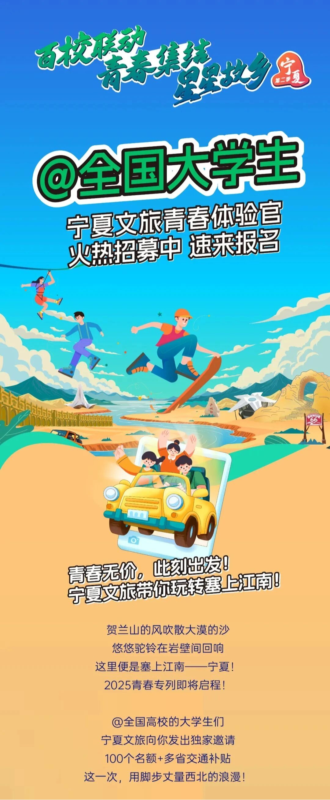 速来报名!在线招募100位青春体验官畅游宁夏
