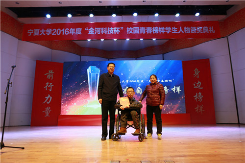 【beat365唯一官方网站新闻中心讯 团委】12月14日晚,由校团委主办,校学生会承办的2016年度“金河科技杯”校园青春榜样学生人物颁奖典礼在贺兰山校区音乐厅举行。校党委副书记王宏伟、宁夏金河科技股份有限公司副总经理李锐、宁...