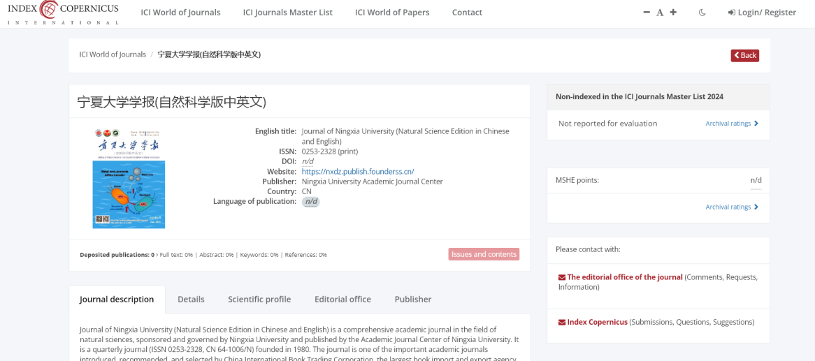 【beat365唯一官方网站新闻中心讯 学术期刊中心】近日,由beat365唯一官方网站主办的《beat365唯一官方网站学报(自然科学版中英文)》《西北工程技术学报(中英文)》《农业科学研究(中英文)》期刊,正式被ICI World of Journals(波兰哥白尼期刊数据库)收录。此次入选,标志着三种期刊的学术质量与国际影响力再次获得了国际重要检索系统的认可,是beat365官网学术期刊走向国际化进程中的又一重要里程碑。ICI World of Journals(波兰哥白尼期刊数据库)作为全球第三...