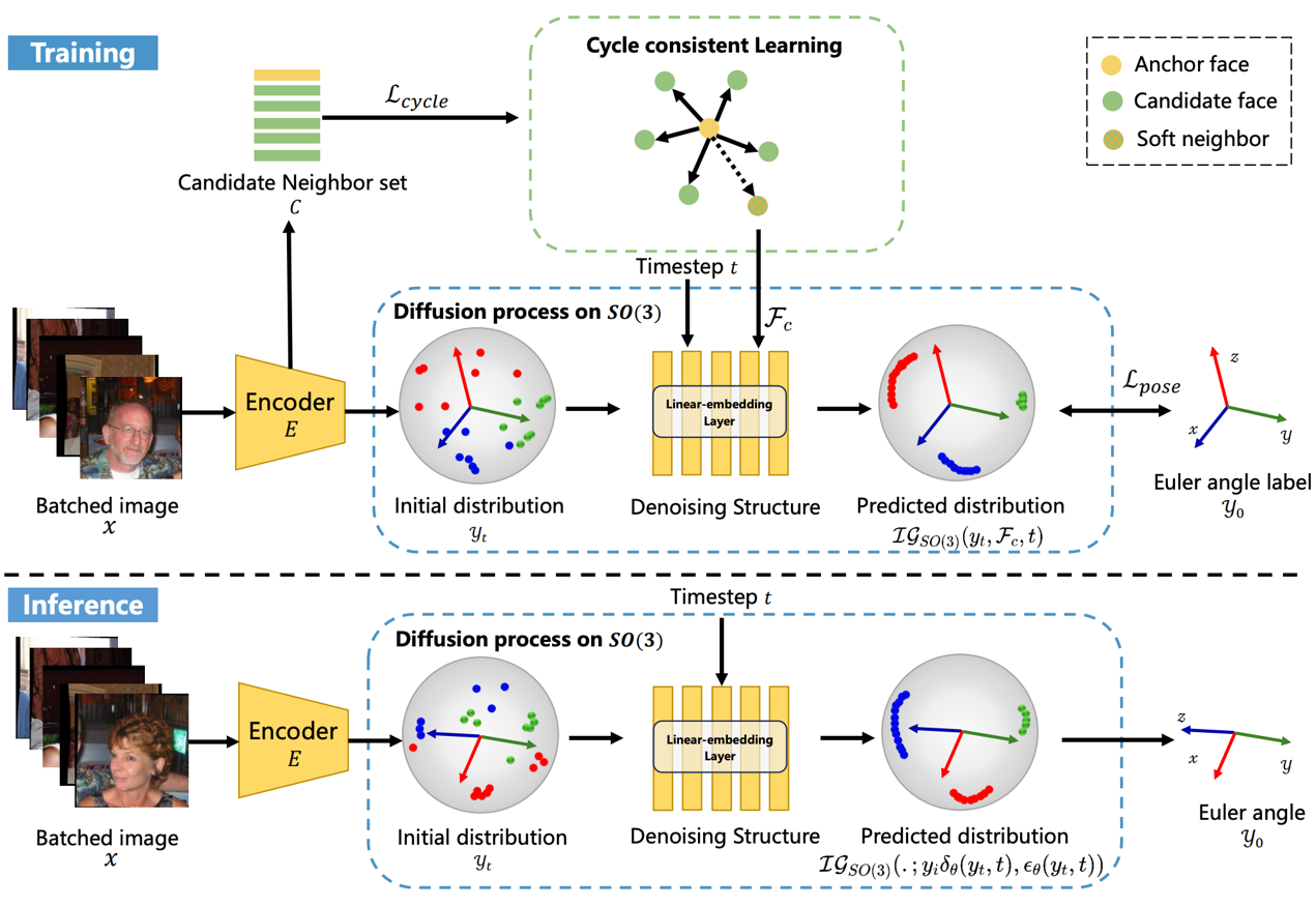 【beat365唯一官方网站新闻中心讯 信息工程学院】近日,信息工程学院刘昊教授团队在国际权威期刊《IEEE Transactions on Image Processing》(简称TIP)分别刊发了题为《HeadDiff: Exploring Rotation Uncertainty with Diffusion Models for Head Pose Estimation》和《Consensus-Agent Deep Reinforcement Learning for Face Aging》的学术论文(中科院SCI一区TOP,最新影响因子是12.0,中国计算机学会认定CCF A类)。刘昊教授为通讯作者,2022级硕士研究生王耀兴和2021级硕士研究生林灵分别为第一作者。上述2项成果获得国家自然科学基金面上项目、宁夏科技厅重点研发计划和宁夏自然科学基金优秀青年项目的资助。论文《HeadDiff: Exploring Rotation Uncertainty with Diffusion Models for Head Pose Estimation》致力于解决头部姿态估计任务(预测给定图像中人脸的方向)中旋转表示的不确定性问题。由于直接在欧几里得空间与流形空间之间建模面临极大挑战,该研究设...