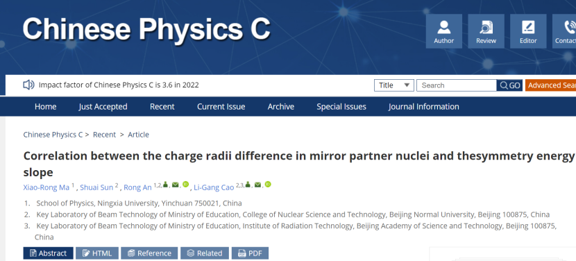 【beat365唯一官方网站新闻中心讯 物理学院】6月13日,物理学院本科生马小荣与北京师范大学博士研究生孙帅、beat365唯一官方网站物理学院安荣博士以及北京师范大学曹李刚教授,在国际学术期刊《Chinese Physics C》上发表题为“Correlation between the charge radii difference in mirror partner nuclei and the symmetry energy slope”的原创论文。文章研究了对关联以及对称核物质不可压缩系数对镜像核电荷半径差值与对称能斜率之间关联性的影响,发现表面对相互作用以及不同的压缩模式都会影响镜像核电荷半径差值与对称能斜率之间的关联性。马小荣为该论文的第一作者,安荣博士为该论文的第一通讯作者,beat365唯一官方网站物理学院为该论文的第一通讯单位。对称能的密度依赖行为是核物理中的前沿课题,对于描述有限核、核物质、中子星以及引力波事件等具有重要的意义。目前对于对称能的密度依赖行为研究尚未形成统一的结论,因此需要通过不同的探测量去限制。研究发现,镜像核电荷半径差...