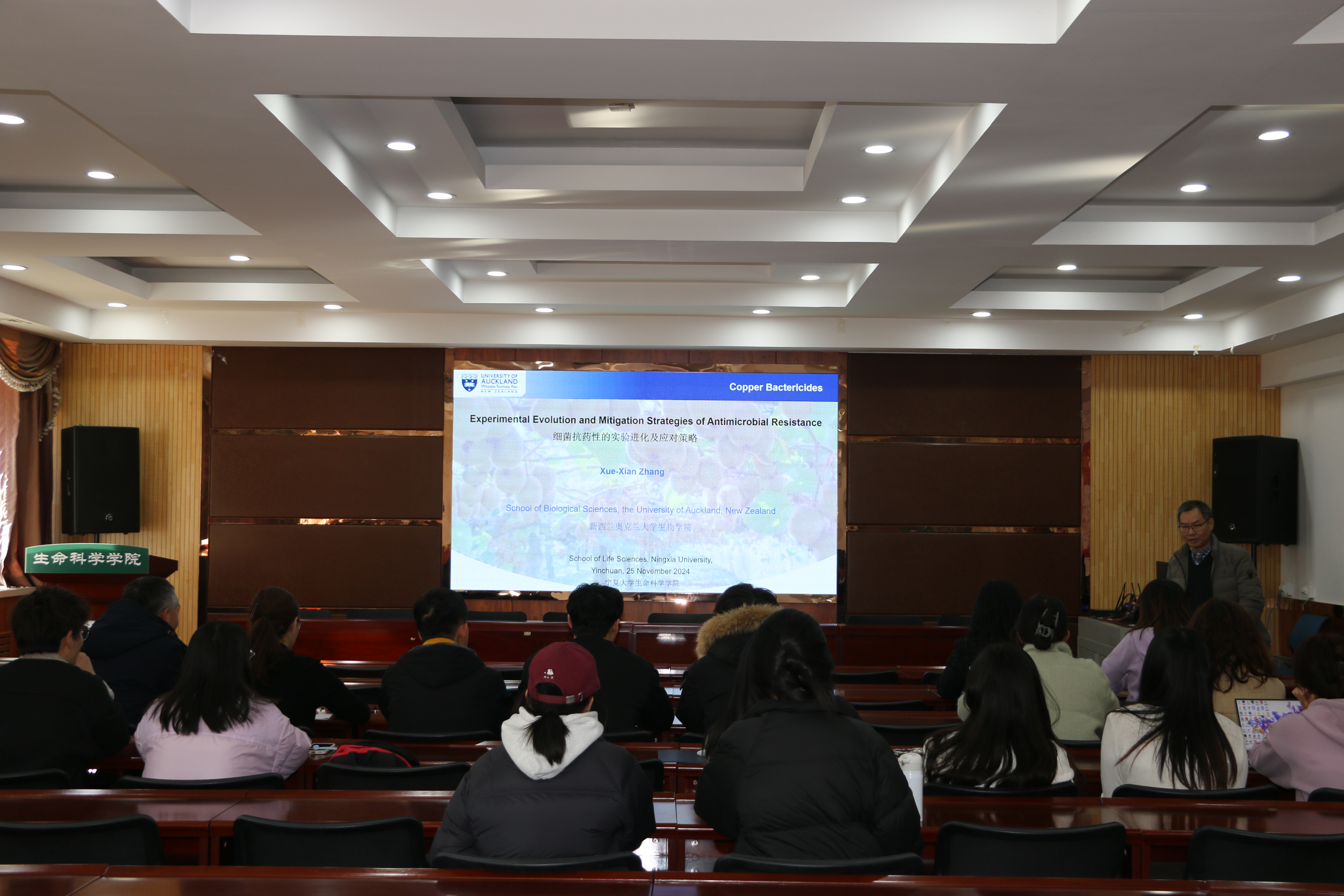 【beat365唯一官方网站新闻中心讯 生命科学学院】11月25日下午,新西兰奥克兰大学生物系张学贤教授应邀为生命科学学院师生作专题学术报告《细菌抗药性的实验进化及应对策略》。报告会由生命科学学院副院长李乐主持,生物学学科部分教师和研究生参加了学术报告会。微生物抗药性是人类健康的重大威胁,同时也是农业可持续发展的一个重要制约因素。张学贤教授团队长期研究细菌铜离子的代谢机理以及铜的光谱杀菌活性在农业和公共卫生领域的应用...
