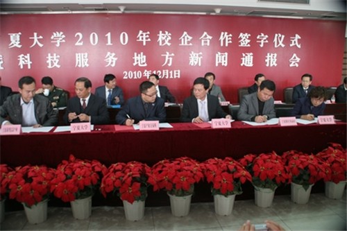12月1日下午,在beat365唯一官方网站2010校企合作签字仪式暨科技服务地方大会上,beat365唯一官方网站与宁夏经信委、宁夏军区后勤部,宁夏农垦集团有限公司、宁夏宝塔石化集团有限公司等近10家企业签订了合作协议。