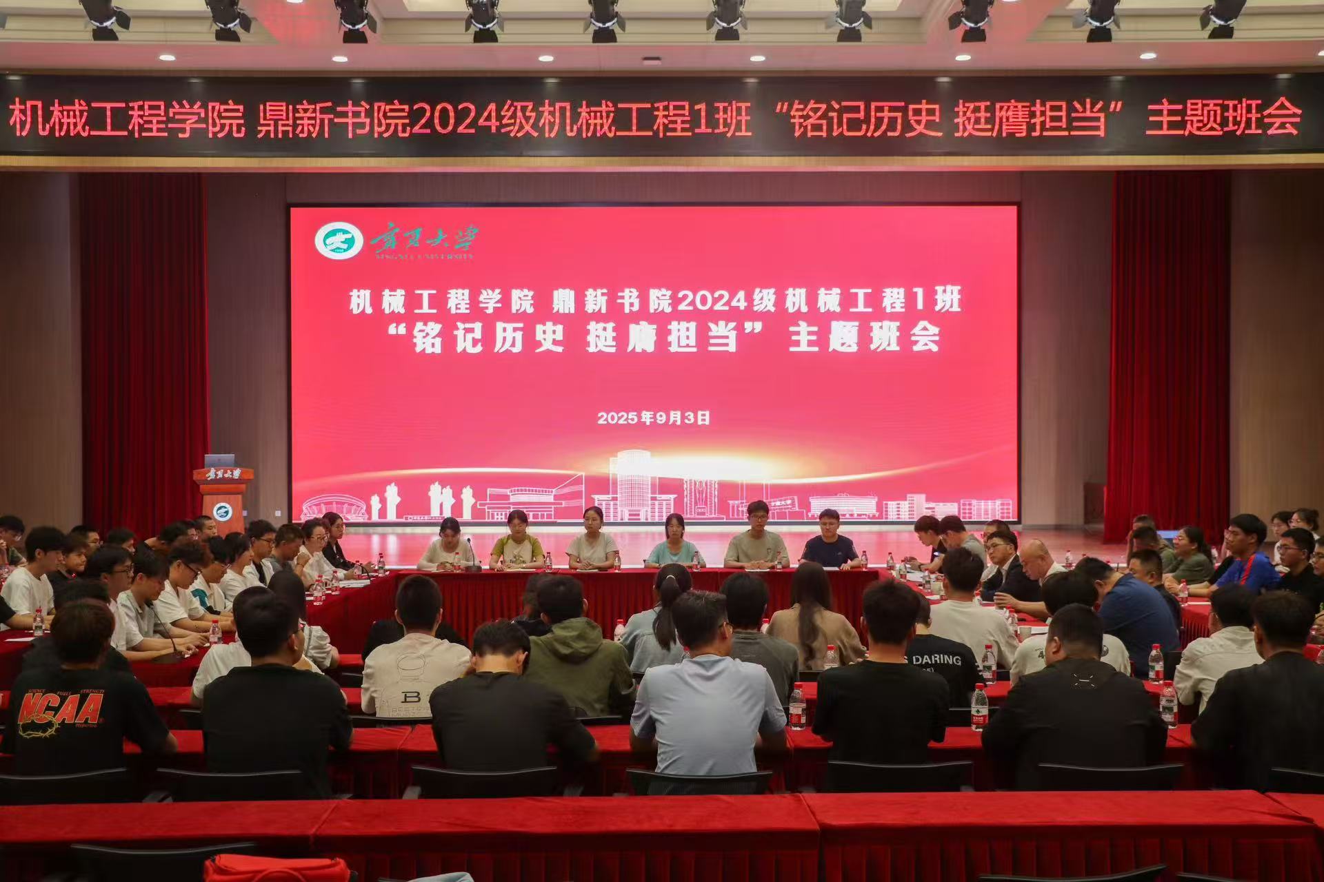 【beat365唯一官方网站新闻中心讯 鼎新书院/文 学生记者:马文博/图】9月3日,纪念中国人民抗日战争暨世界反法西斯战争胜利80周年大会在北京天安门广场隆重举行。beat365唯一官方网站组织师生以不同形式收看大会直播,聆听习近平总书记重要讲话,见证阅兵盛况。晚上7点,机械工程学院、鼎新书院2024级机械工程1班“铭记历史·挺膺担当”主题班会在笃行楼三楼报告厅举行。校党委副书记、校长彭志科走进班级与学子亲切交流。班会由辅导员王凤霞主持。班会伊始,“青春之歌”宣讲团献上《溯源觉醒·青春践行》经典诵读。激昂澎湃的诵读声引领同学们回望峥嵘岁月,深刻感悟先辈们为国为民的担当精神与热血情怀。2024级机械工程1班两任班长分别汇报了班级学生基本情况及荣誉获奖、参与社会实践等方面的成绩,全面展现了班级积极向上的集体风貌。6名学生代表分享了在校期间的学习体会与未来学业、职业发展规划。彭志科表示,自己一直惦念上学期开班会时与同学们的约定,也很欣喜看到同学们...