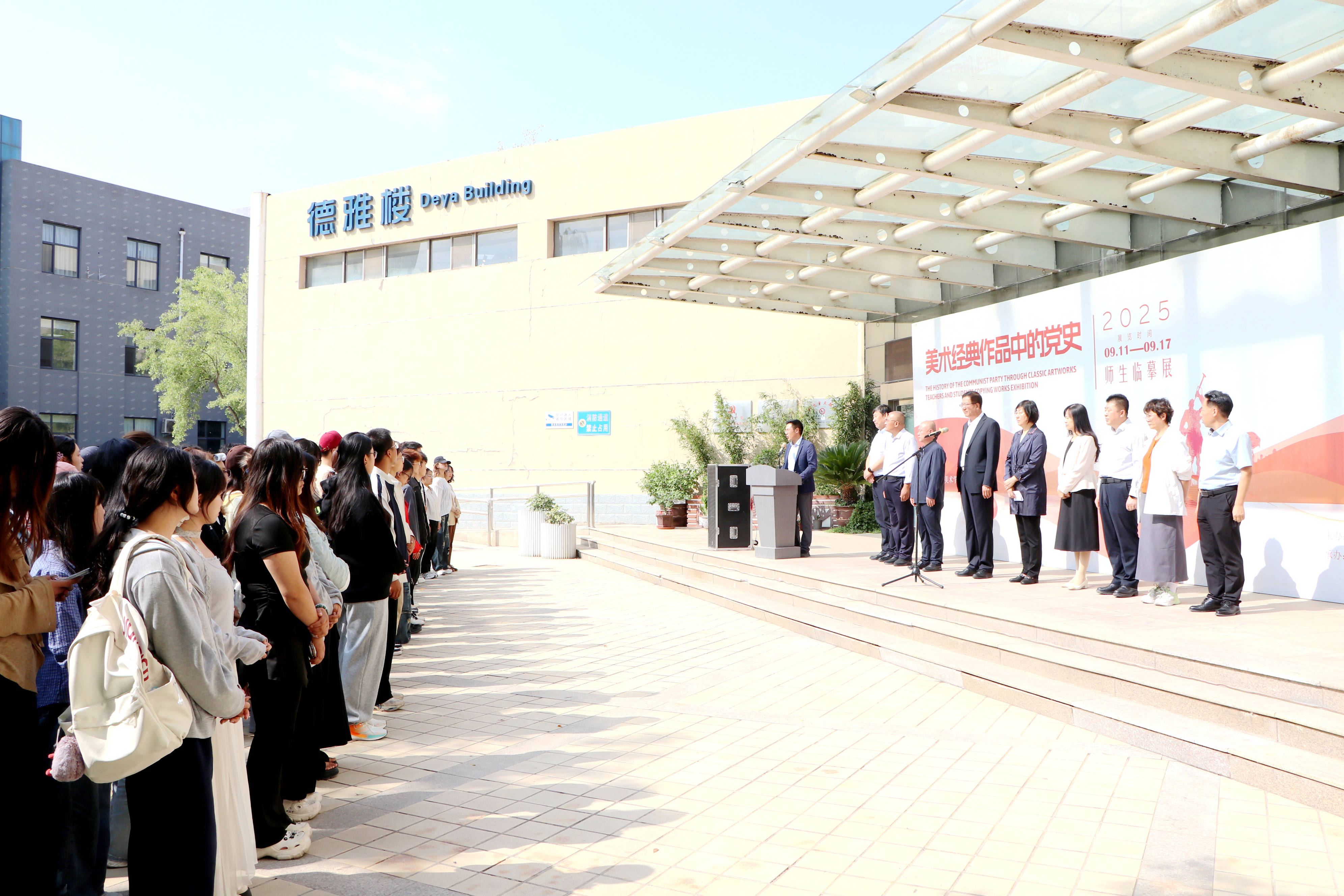 【beat365唯一官方网站新闻中心讯 张景/文、图】在全国上下纪念中国人民抗日战争暨世界反法西斯战争胜利80周年的重要历史节点,9月17日,beat365唯一官方网站“美术经典作品中的党史”师生临摹展在贺兰山校区美术学院正式开幕。校党委书记王宏伟,校党委副书记韩惠丽出席开幕式,党委宣传部、党委学生工作部、哲学与艺术学部、马克思主义学院、美术学院、尚德书院等相关单位负责人及师生代表共同见证展览启幕。开幕式由校党委常委、宣传部部长高永兴主持。王宏伟宣布“美术经典作品中的党史”师生临摹展正式开幕。韩惠丽在致辞中表示,美术经典作品是凝固的历史,是时代的缩影,更是精神的火炬。组织师生临摹这些经典作品,是与历史对话的过程,是对初心的叩问,是对革命先辈的敬仰,更是对光荣传统的继承。校领导及党务干部、思政课教师为每一幅作品录制党史微课,实现“润物细无声”的教育效果,充分体现了学校将专业教学与思政育人深度融合的积极探索和显著成效,也是学校思政课...