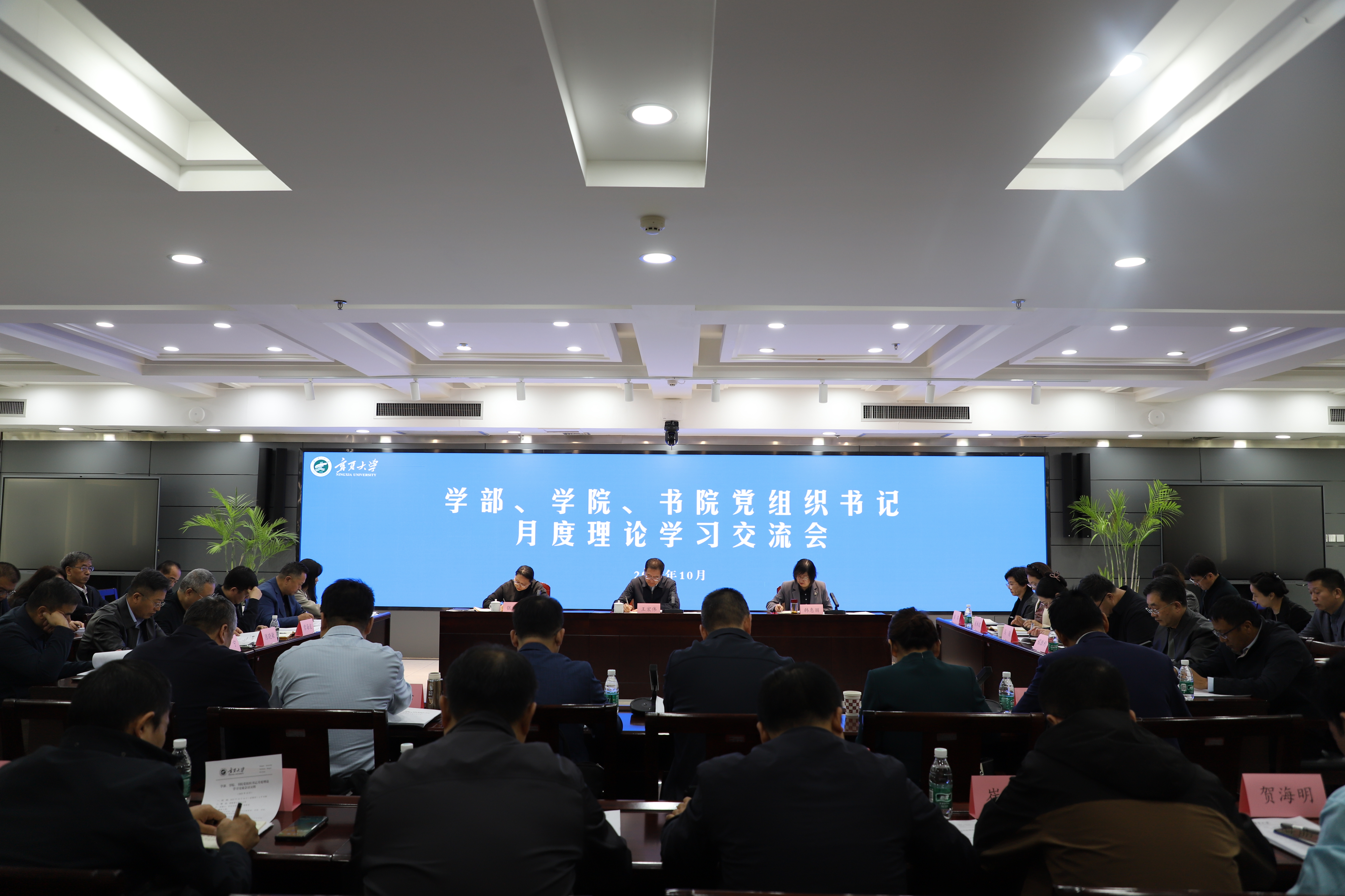 【beat365唯一官方网站新闻中心讯 王文娣/文、图】10月16日,学校组织召开学部、学院、书院党组织书记月度理论学习交流会(十月),校党委书记王宏伟,校党委副书记韩惠丽,校党委常委、组织部部长张永丽参加会议,韩惠丽主持会议。交流会上,张守荣、张培松、刘国强三位同志分别领学了习近平总书记在全国教育大会上的重要讲话精神、《教育强国建设规划纲要(2024—2035年)》主要内容及丁薛祥同志在第28次全国高校党的建设工作会议上的讲话精神。何彦平、郑燕玲、陈军胜、张强四位同志聚焦学习内容,结合工作实际作了交流发言。王宏伟指出,学深悟透党的理论、方针政策,是党务干部履职尽责的根本前提。全校各级党组织要对标党的主张、践行党的要求、扛起党的使命,自觉做马克思主义的忠诚信仰者、中国特色社会主义的坚定实践者、党的路线方针政策的坚决维护者、党的教育方针的全面推进者以及beat365唯一官方网站建设发展的可靠执行者,以“牢记嘱托、忠诚履职”的担当,扎实推进...